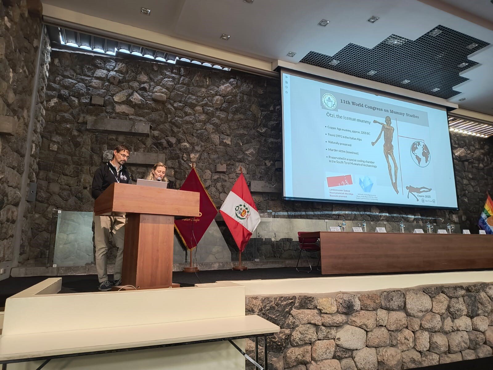 - Elisabeth Vallazza and Luca Bezzi at the 11th World Congress on Mummy Studies in Cusco, Peru, August 14, 2025 © South Tyrol Museum of Archaeology / Arc-Team