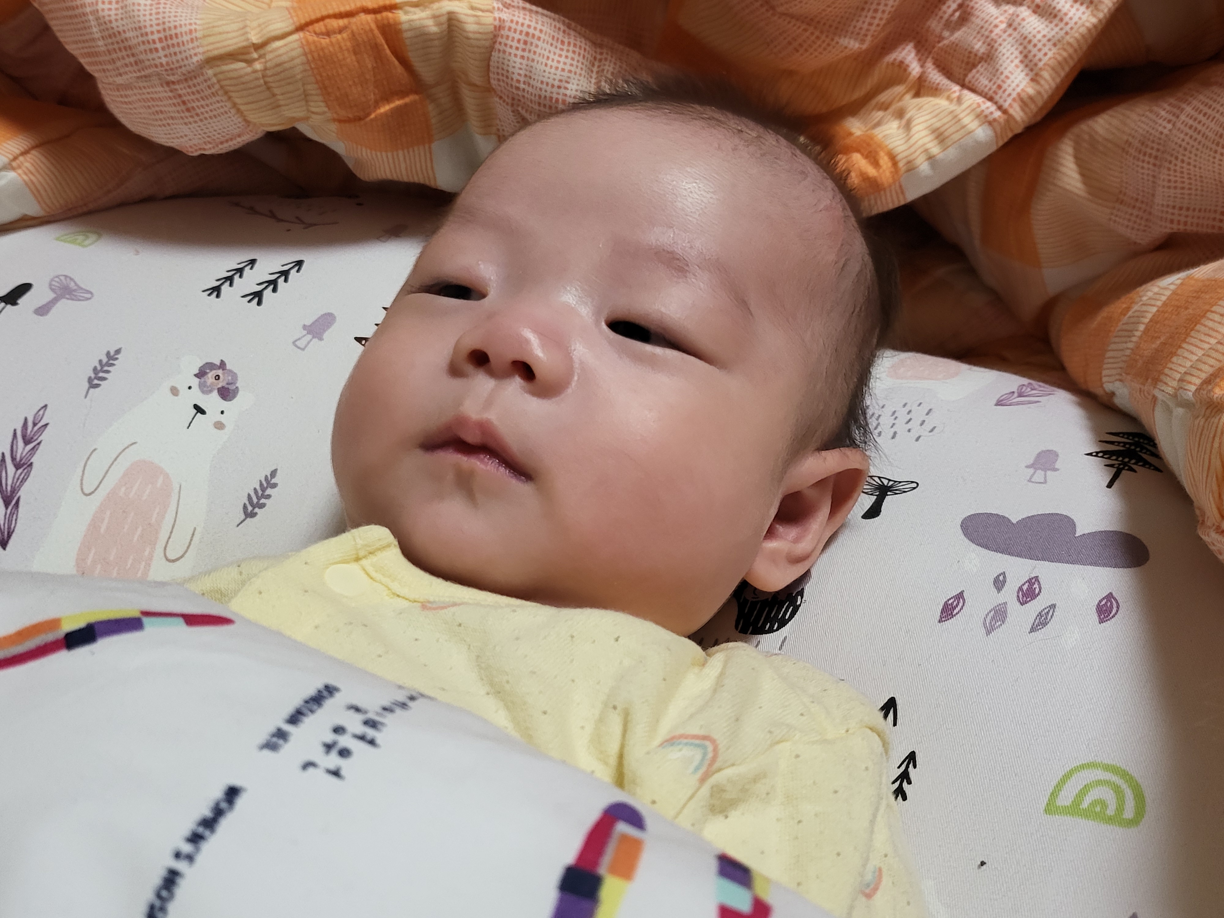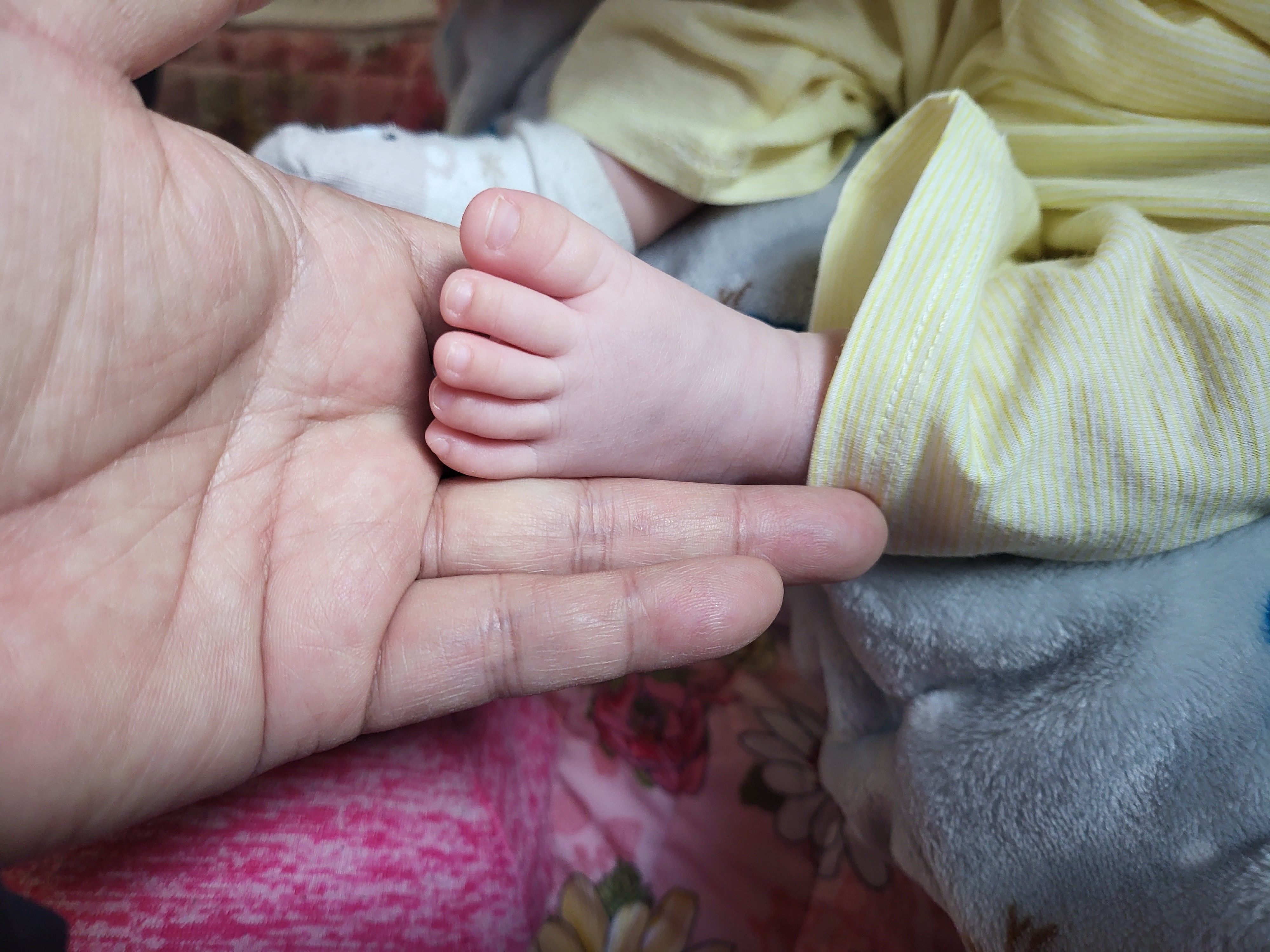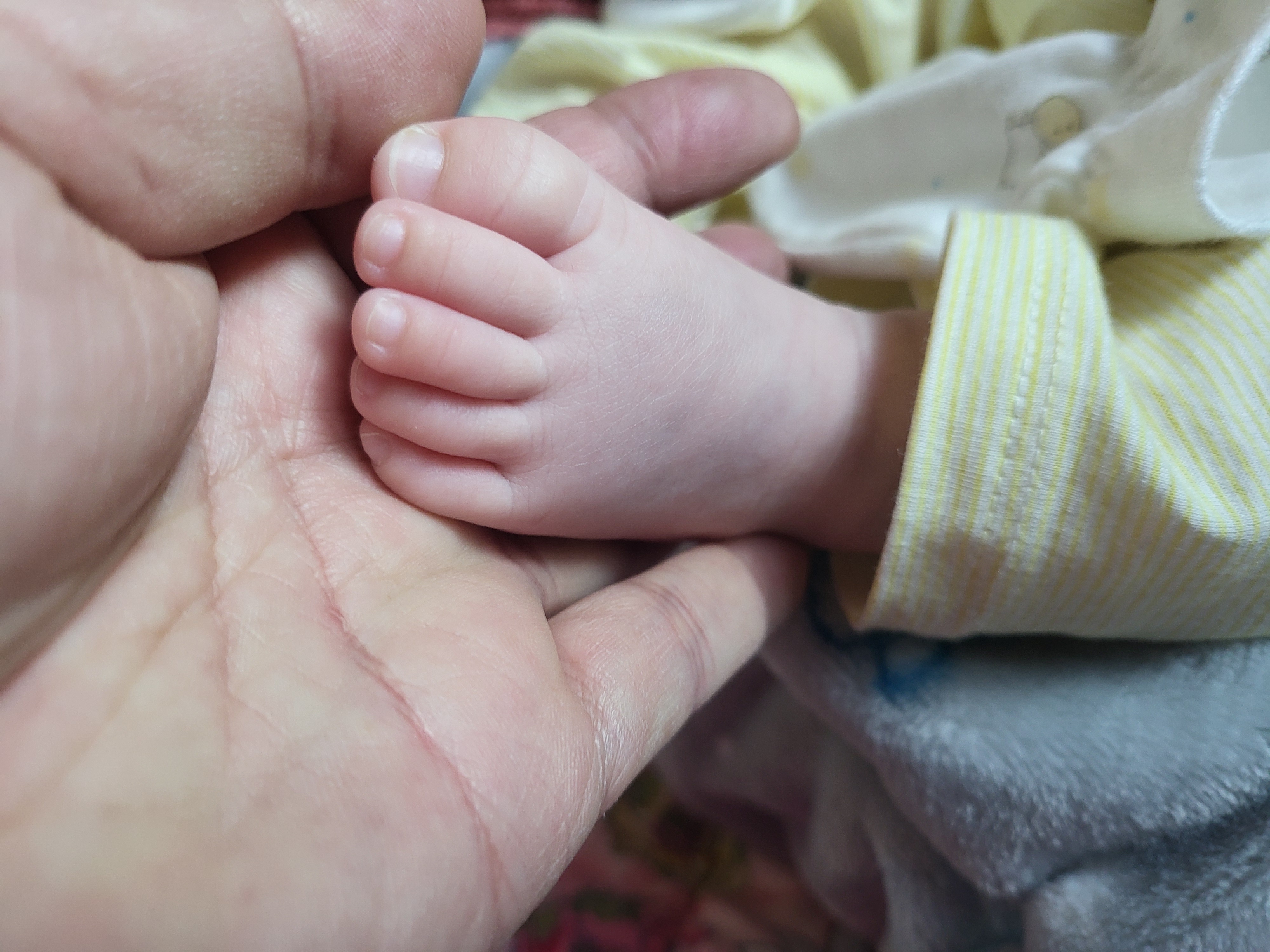 발등으로 몽골반점 흔적이 완연하다.