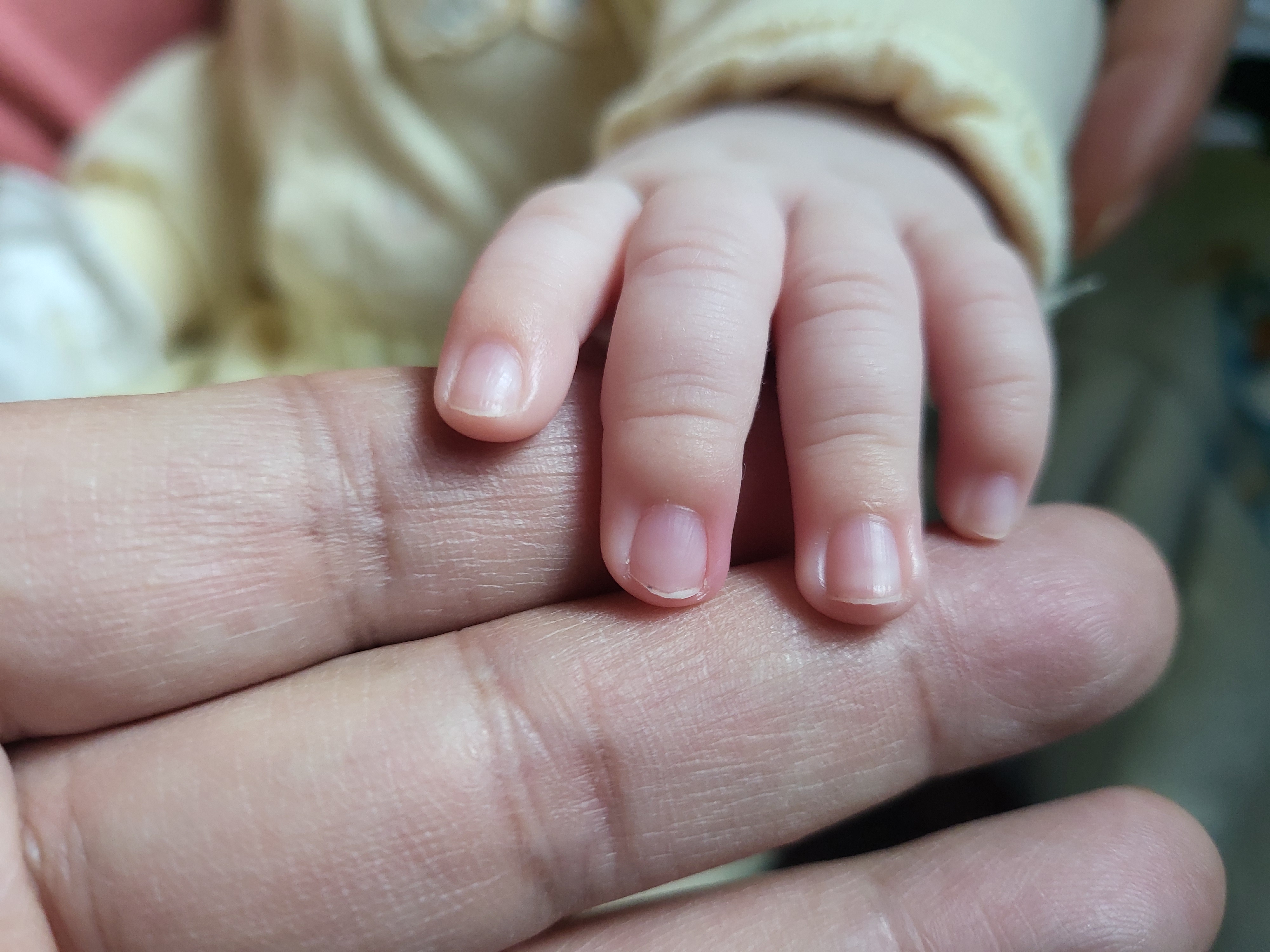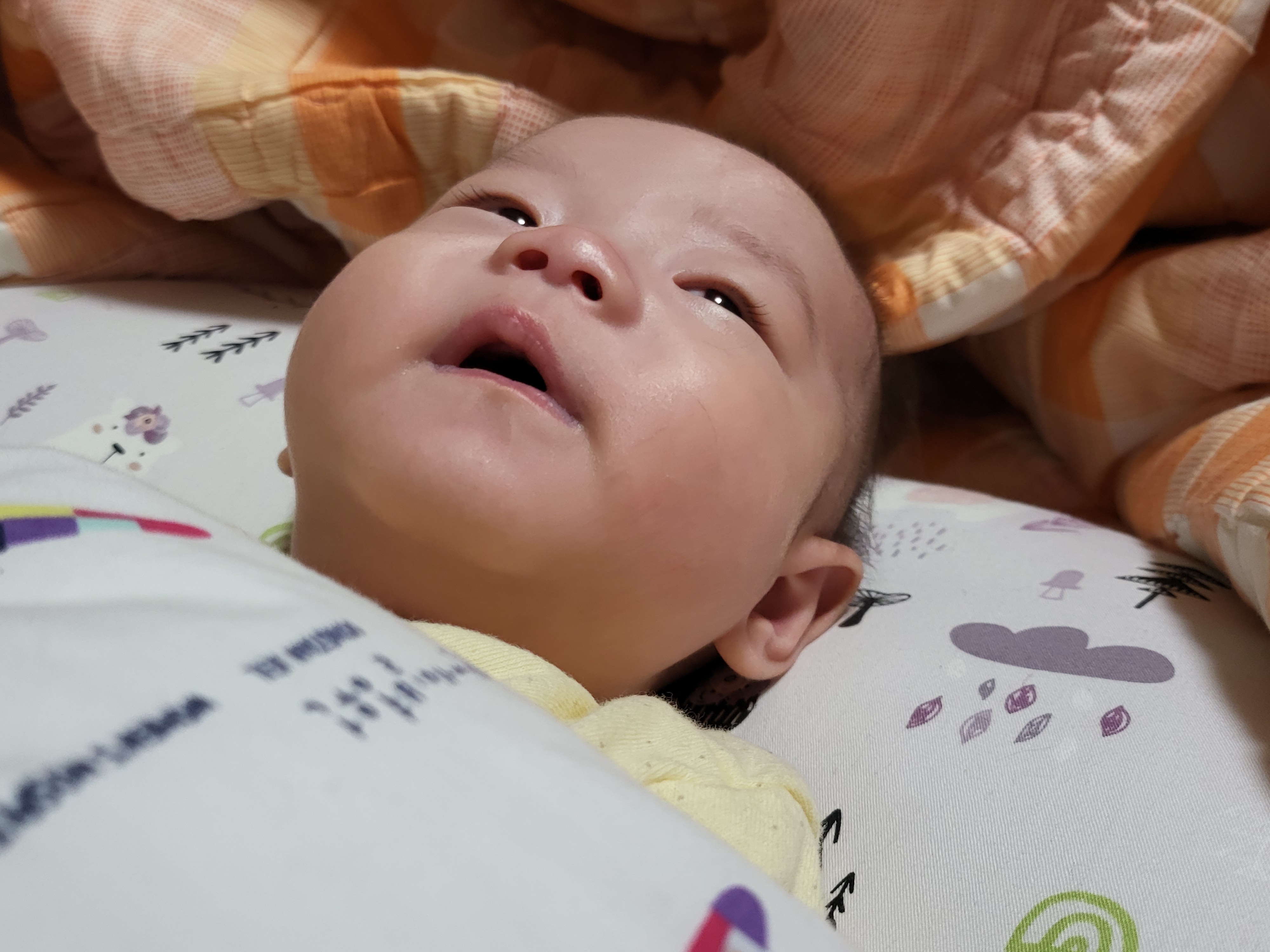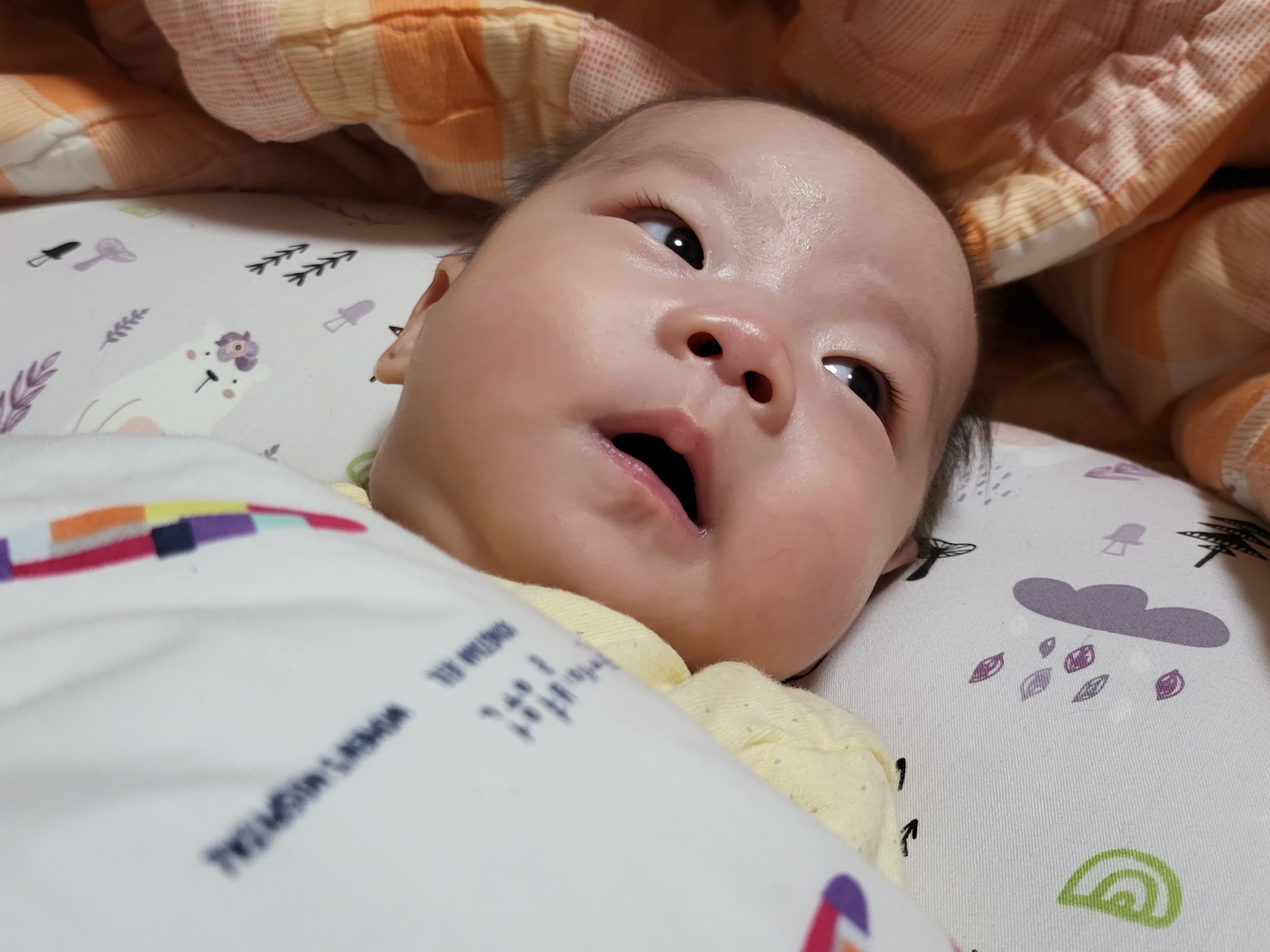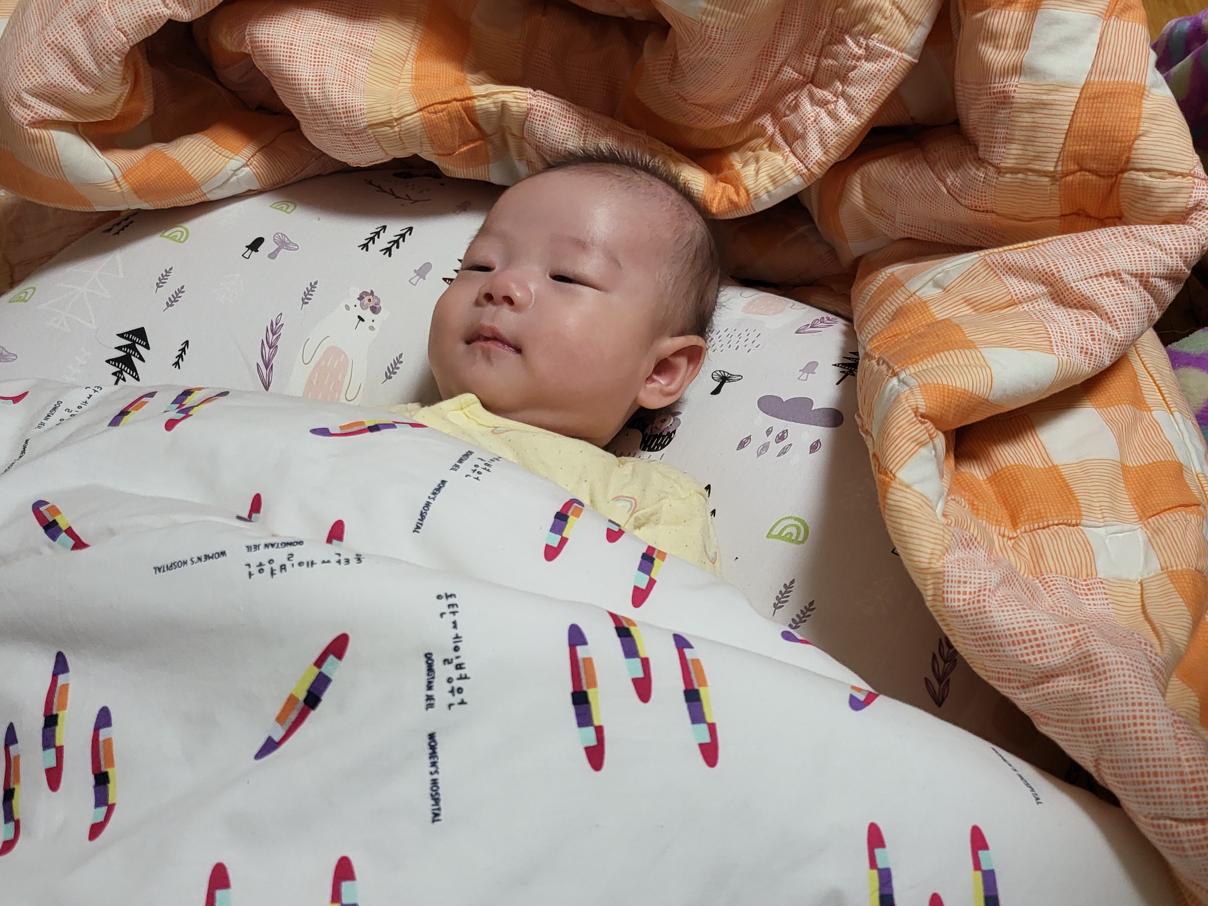 발등으로 몽골반점 흔적이 완연하다.