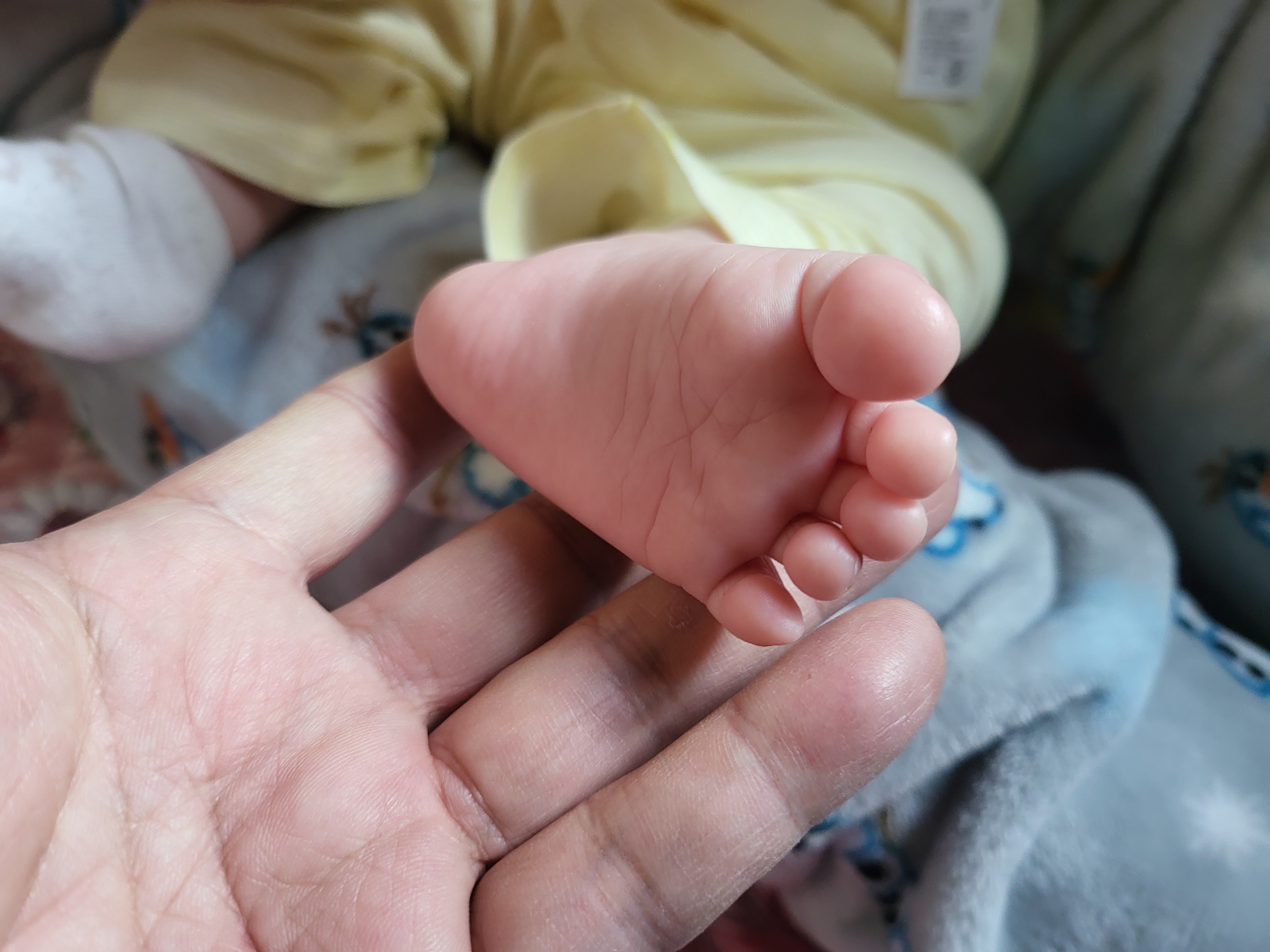 발등으로 몽골반점 흔적이 완연하다.