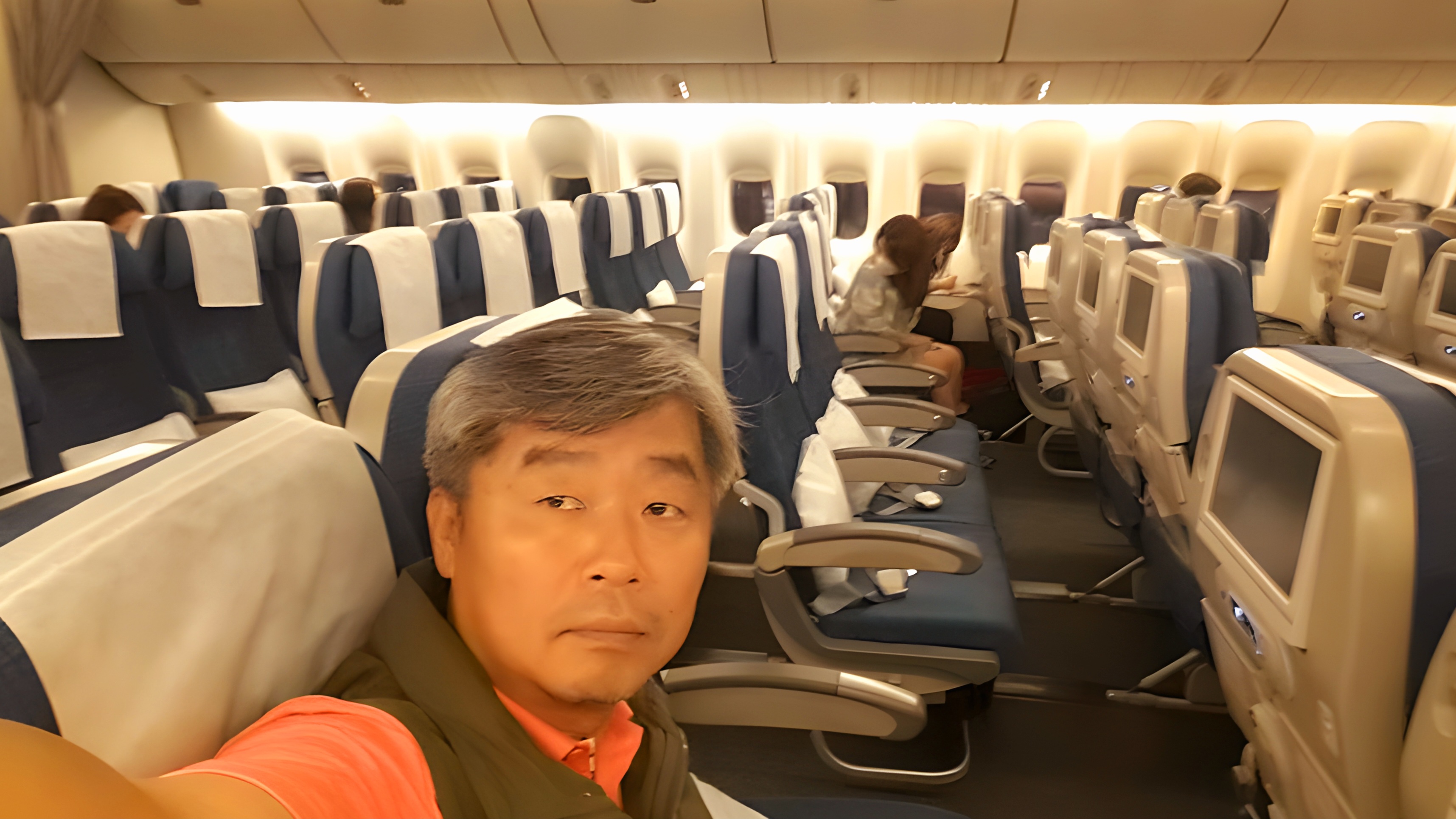 저 넓은 비행기에 손님은 몇 명 되지 않았으니 나는 마음대로 활보하며, 누워서 귀국했다.