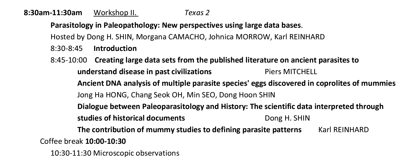 이 워크샵은 고고기생충 관련 발표가 4개가 있었고,