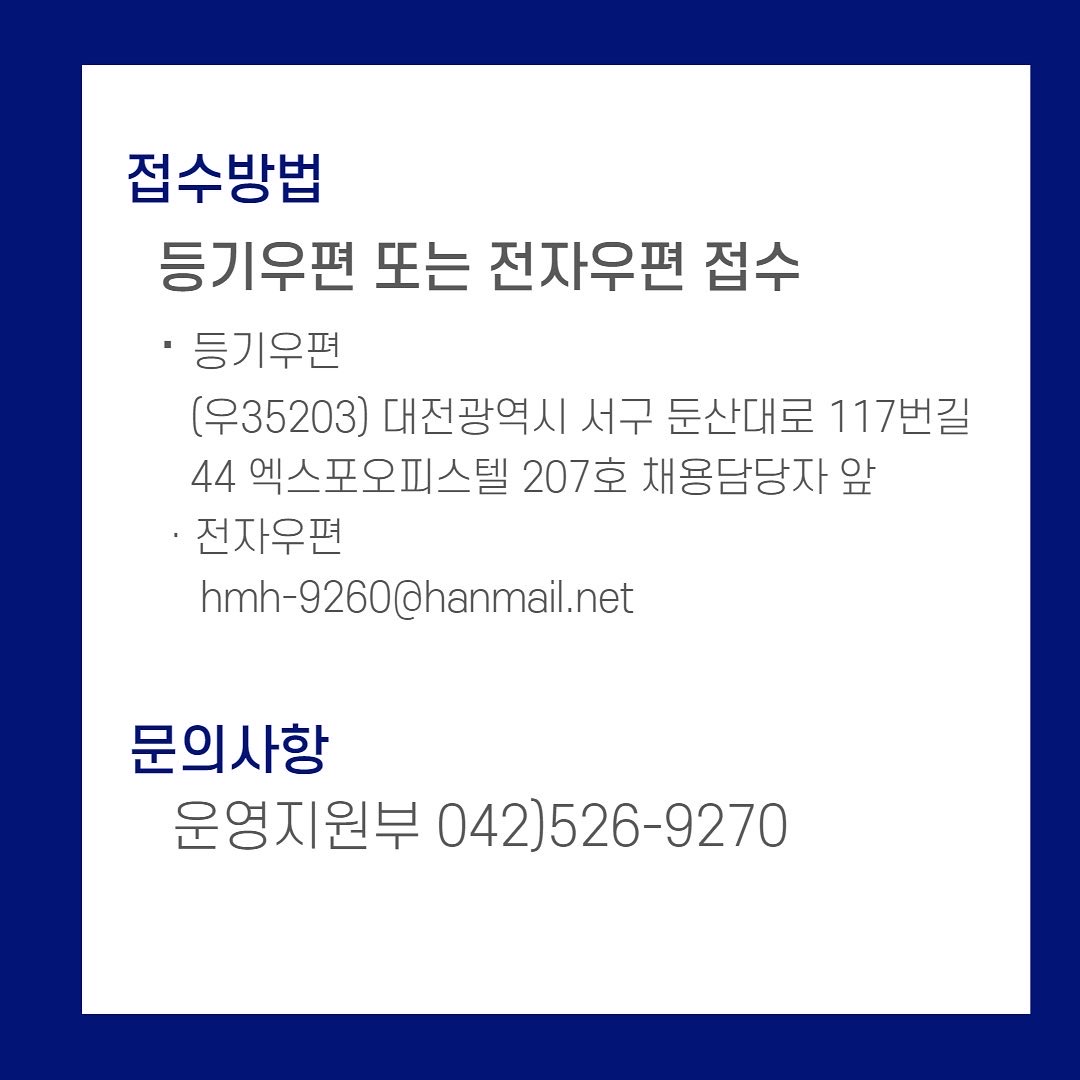 - 등기우편 : (우35203) 대전광역시 서구 둔산대로 117번길 44