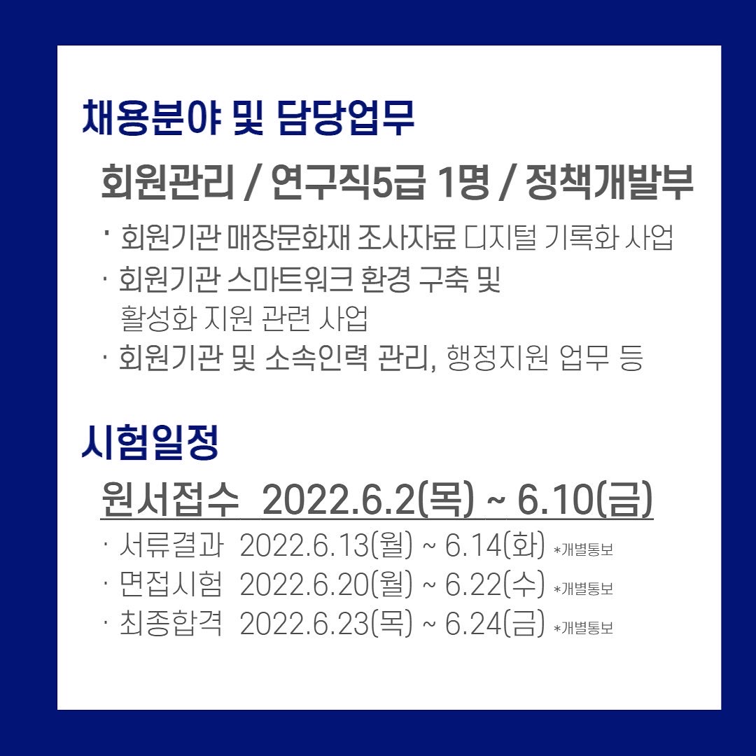 🔵2022년도 한국문화유산협회 채용공고🔵