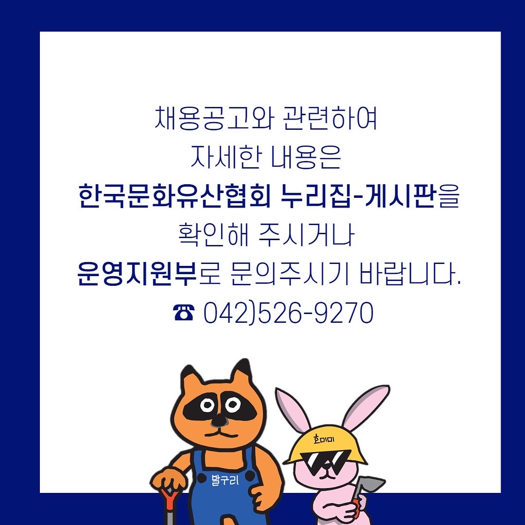 한국문화유산협회에서 같이 근무하실 유능한 인재를 모집하고 있습니다. 관심있는 분들의 많은 지원 바랍니다.