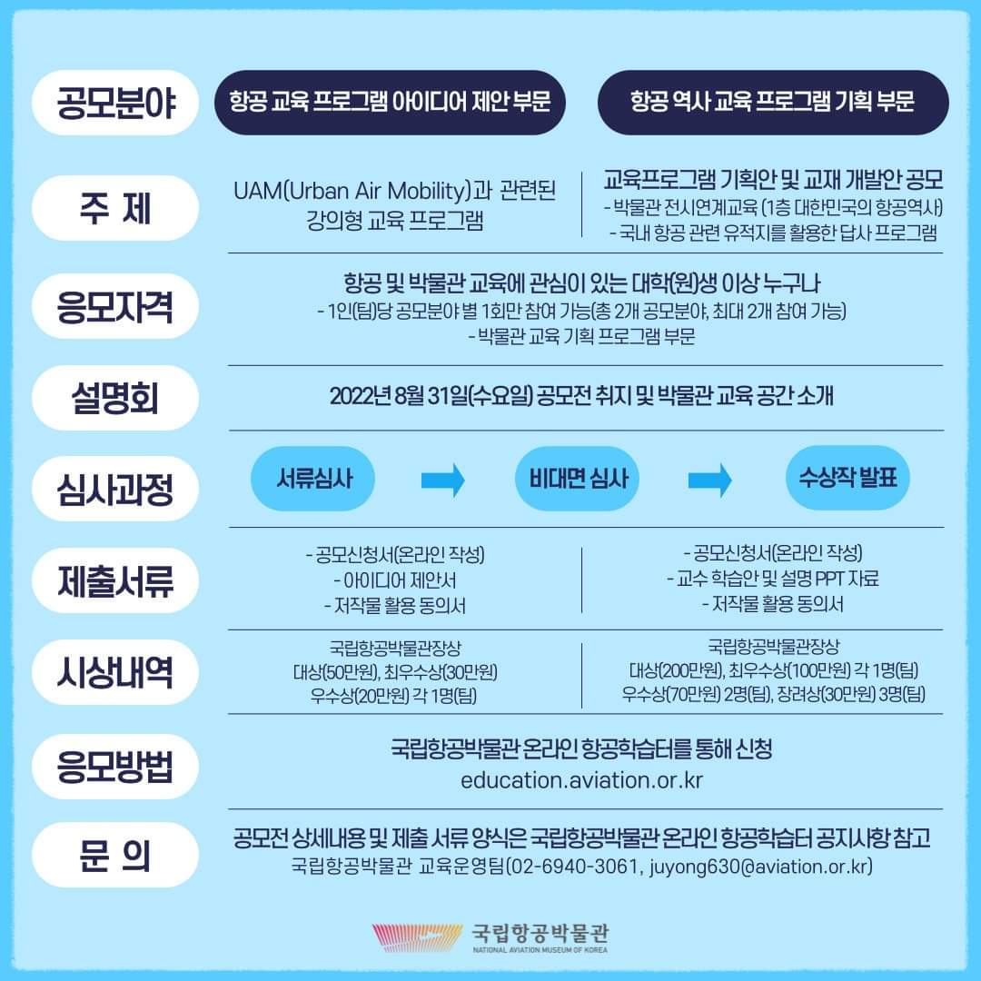 8월 24일부터 2022년 국립항공박물관 교육 프로그램 공모전을 개최합니다!