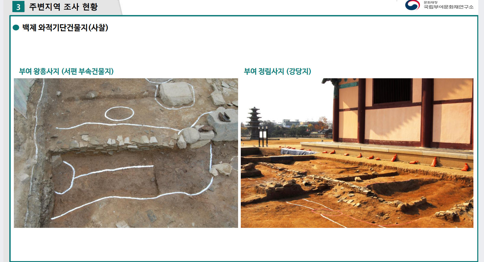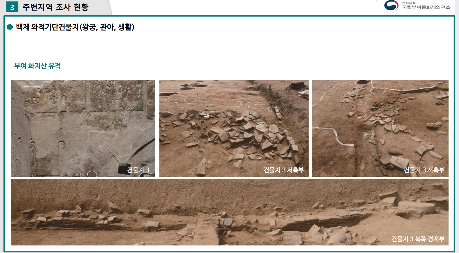 특히 이번에 조사된 부소산성의 와적기단건물지는 동서길이가 각각 16m 이상인 북쪽 건물과 14m 이상인 남쪽 건물지 두 동이 평행하게 배치된 것을 확인하였다. 또한 기단이 최대 20단 가까이 남아있는 것으로 확인되어 지금까지 알려진 와적기단건물지의 기단이 평균 5~6단 남아있는 것과 비교하면 수평으로 쌓은 와적기단 중 가장 잘 보존된 형태라고 할 수 있다.