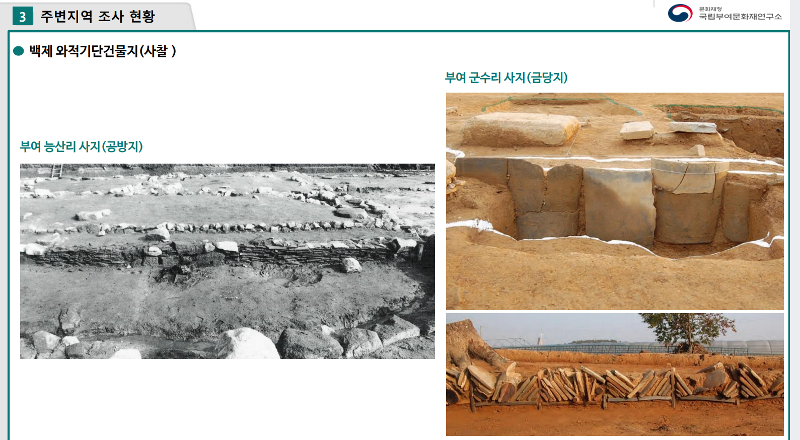 발굴성과는 이른바 언론계 용어로 야마를 잡을 수밖에 없는데, 이번 시굴에서 와적기단瓦積基壇이라 해서 백제시대 건물 흔적을 찾은 모양이라 그걸 내세웠다. 와적 기단이란 보나마나 왜놈들 용어를 그대로 빌려다 놓은 것으로, 글자 그대로 기와무지를 깔아 건물 기초로 활용한 것으로, 현재까지 발굴성과로 보면 삼국 중에서도 유독 백제 쪽에서, 그것도 대체로 사비시대에 집중으로 확인한다.