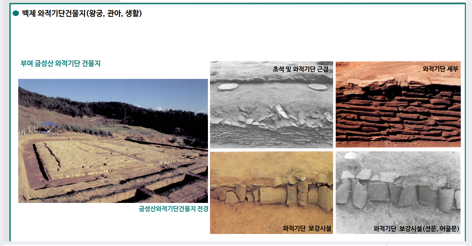 특히 이번에 조사된 부소산성의 와적기단건물지는 동서길이가 각각 16m 이상인 북쪽 건물과 14m 이상인 남쪽 건물지 두 동이 평행하게 배치된 것을 확인하였다. 또한 기단이 최대 20단 가까이 남아있는 것으로 확인되어 지금까지 알려진 와적기단건물지의 기단이 평균 5~6단 남아있는 것과 비교하면 수평으로 쌓은 와적기단 중 가장 잘 보존된 형태라고 할 수 있다.