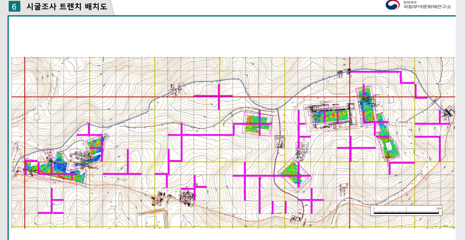 한데 일명 트렌치 조사라 하는 이 시굴조사는 조사지역으로 정한 구역 문화재 분포양상을 보고자 대체로 길쭉이 모양으로 구댕이를 푹푹 파제껴서 안에 뭐가 어떤 모양으로 있나를 째보는 것이라, 매장법상 이런 시굴은 조사대상 면적 중 10% 이내로 제한한다. 넘어가면? 재피간다.