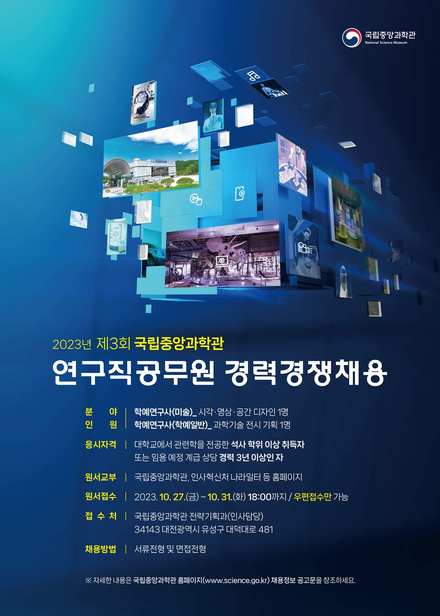 2023년도 제3회 국립중앙과학관 연구직공무원 경력경쟁채용시험 시행 공고 < 채용 정보<소통마