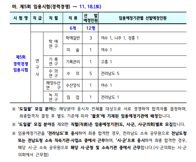 공무원 공개/경력 경쟁임용 | 시험정보 (jeonnam.go.kr)