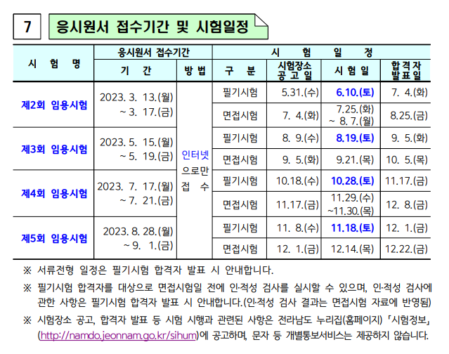 <전라남도청 홈페이지 시험정보>