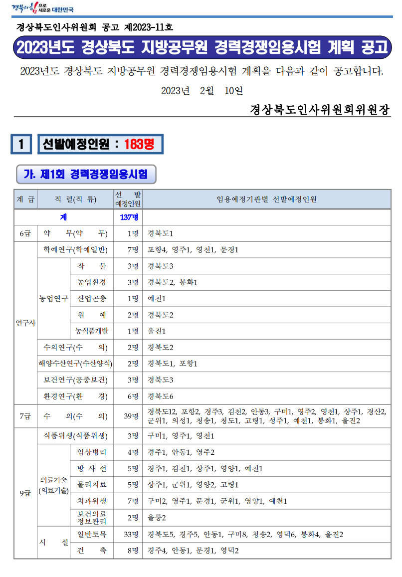 2023년도 경상북도 지방공무원 경력경쟁임용시험 계획 공고상세 | 지방공무원>시험정보>시험정보 (gb.go.kr)