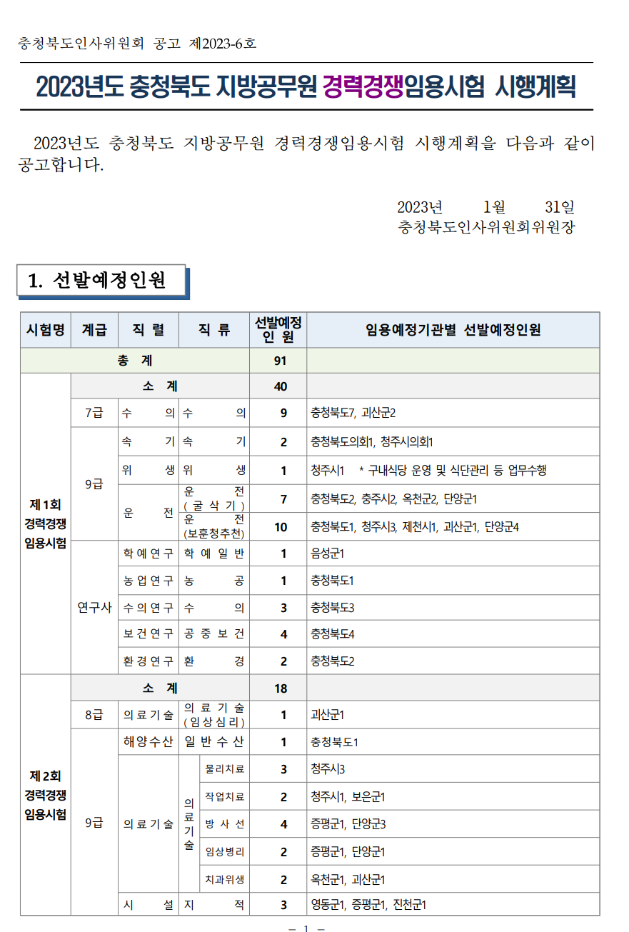 시험공고 - 시험/채용 (chungbuk.go.kr)