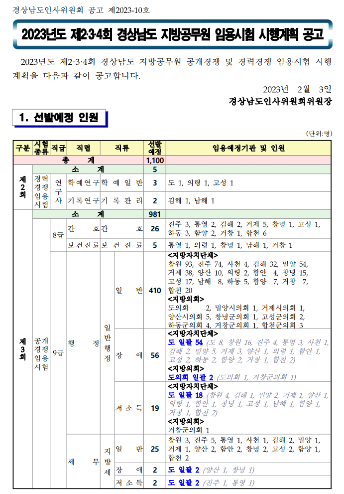 2023년도 제2·3·4회 경상남도 지방공무원 임용시험 시행계획 공고 저작물은 자유이용을 불가합니다.