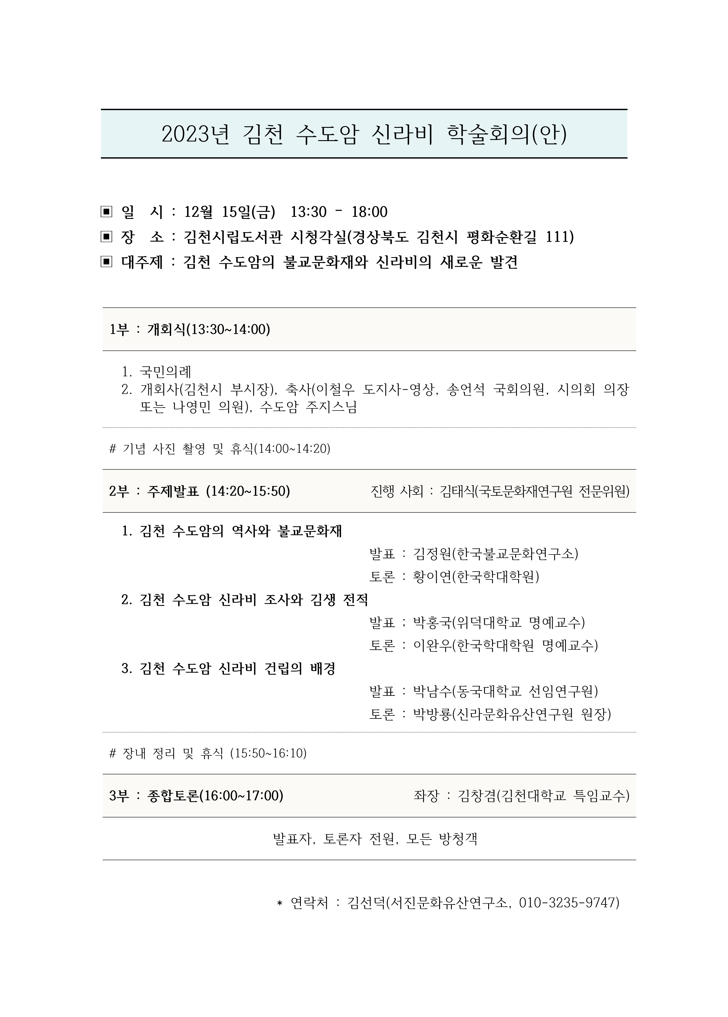 연락처 : 김선덕(서진문화유산연구소, 010-3235-9747)