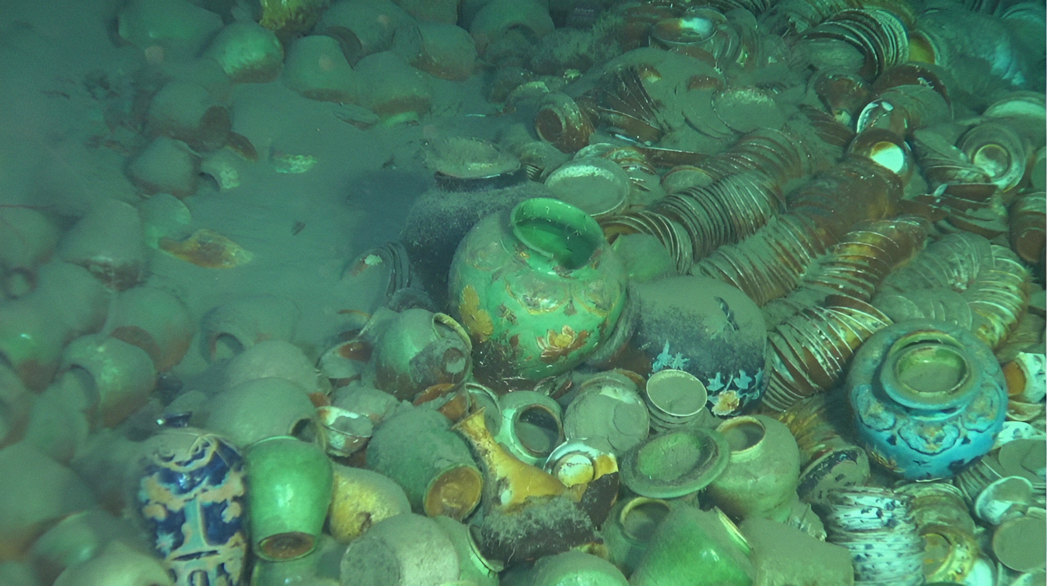 난파선 현장에는 선실로 분리된 것으로 추정되는 문물 더미가 최대 높이 3미터 이상 쌓인 채 발견됐다. 유물은 주로 도자기다.