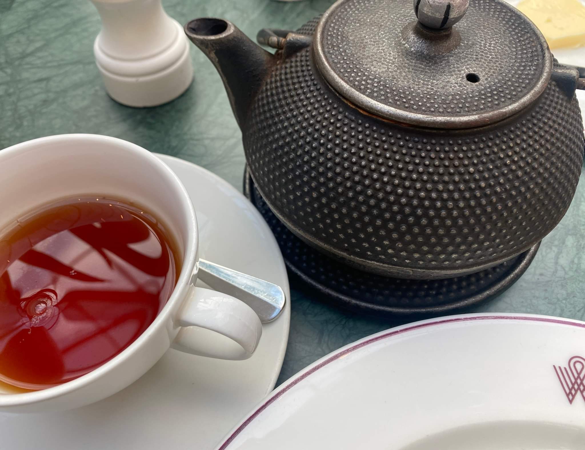 맛있는 밥을 먹고 일본식 무쇠 찻주전자에 내오는 홍차와 디저트를 먹었다.