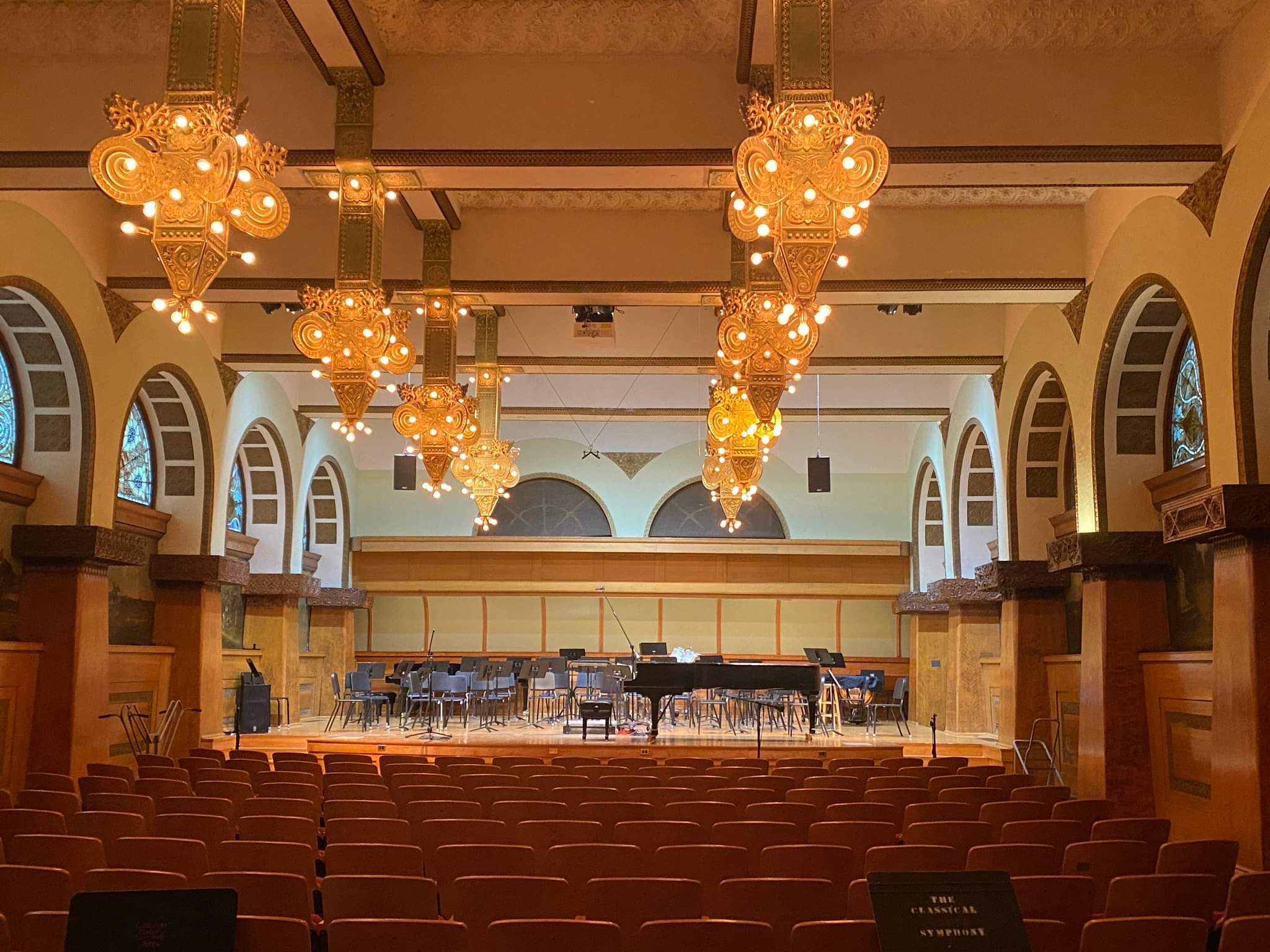식당에 있던 무대와 조명, 벽화 등은 20세기 중반의 사진 모습 그대로였고 용도만 콘서트 홀로 바뀌었다.