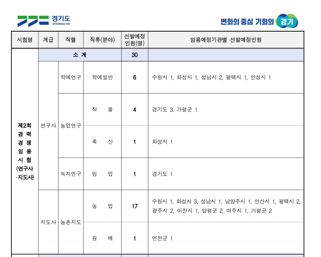 2024년도 제1·2·3회 경기도 지방공무원 경력경쟁임용시험 시행계획 공고 | 시험공고 | 경력 경쟁