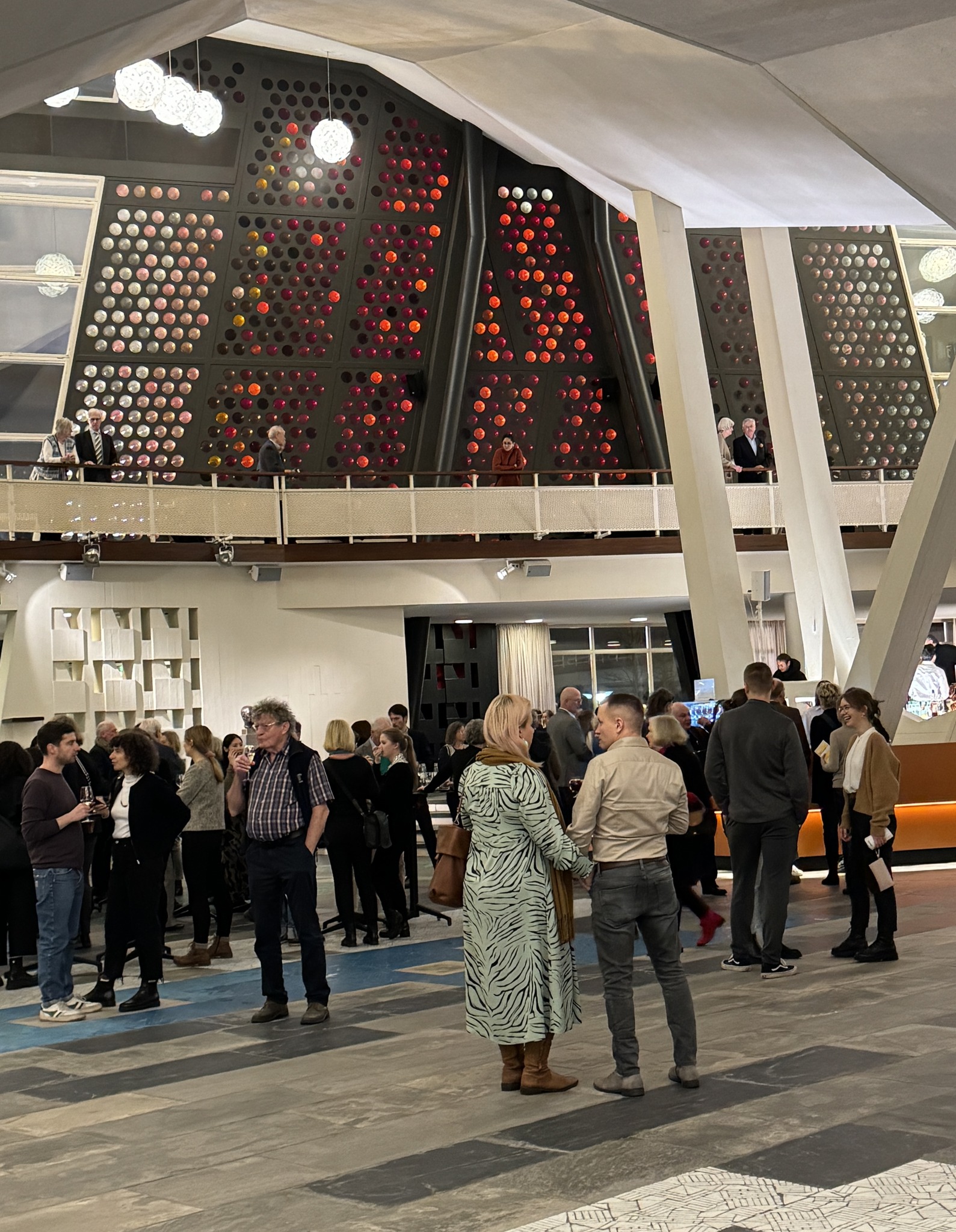 하지만 16개 블록으로 무대를 향해 짠 공간구조의 실현으로 지연되다가 결국 1963년에야 카랴얀의 우격다짐으로 개관했다.