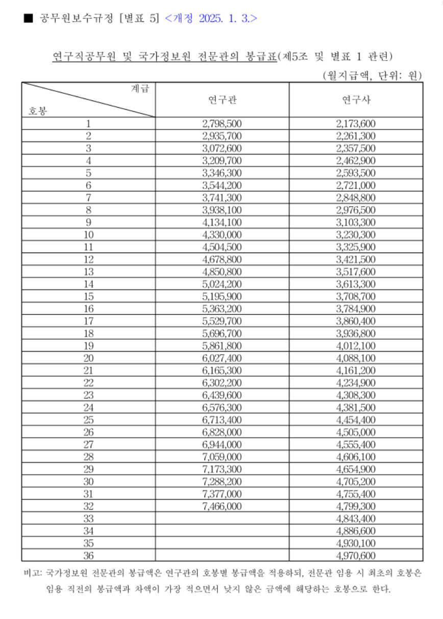 (일반직 6급 20호봉과 비교하면 연구사가 조금 낮다.)