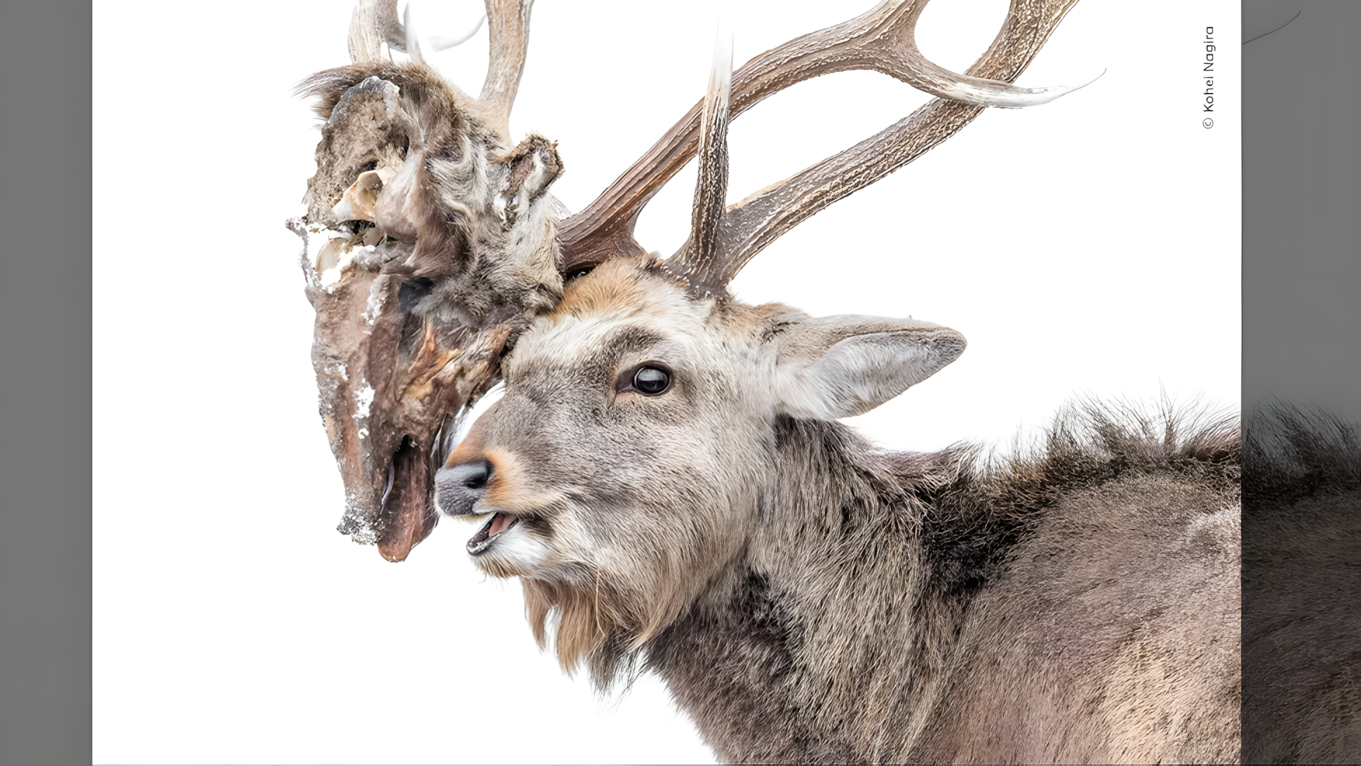 패배한 적의 썩어가는 머리를 뿔에 매달고 있는 수사슴과 장난기 넘치는 스라소니, 누빈 올해의 야생동물 사진작가상 대중 투표 부문 최종 후보에 오르다