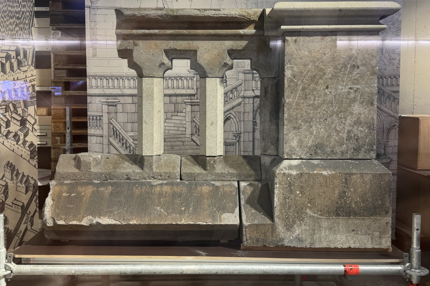 박물관 지상부 건물은 대성당과 모서리를 맞대고 있다.
