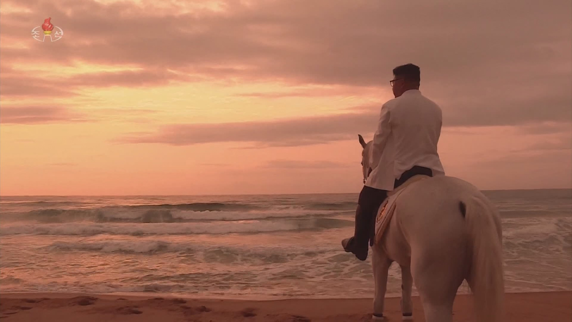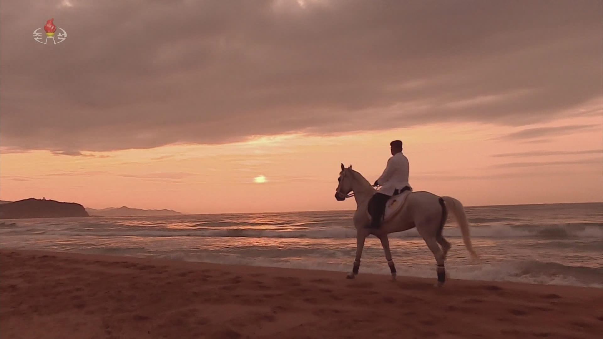 실제 바닷가 백사장에서 찍었는지 아니면 합성인지는 확인 불가하나, 떠오르는 태양을 마주하는 김정은은 태양은 오직 절대군주만이 마주하며 그와 대화하며 그의 뜻을 지상에서 대리하는 유일자라는 동아시아 고래의 독재론에 뿌리를 박는다.