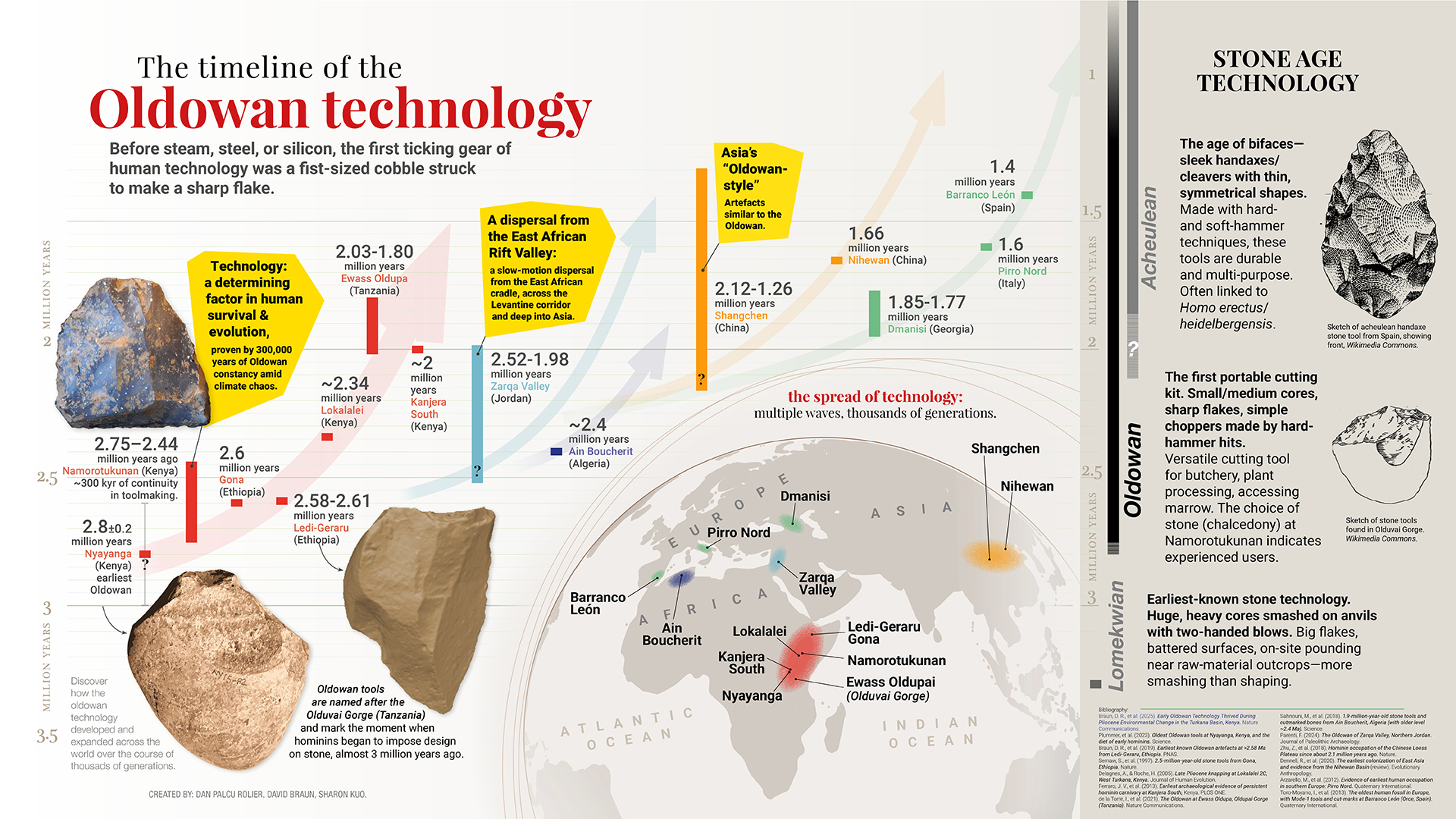 이 유물들은 본질적으로 호미닌이 제작한 최초의 다목적 스위스 군용 칼Swiss Army knives로, 우리 조상들이 지구 역사상 가장 환경적으로 불안정한 시기 중 하나에서 생존했을 뿐만 아니라 번영했음을 보여준다.
