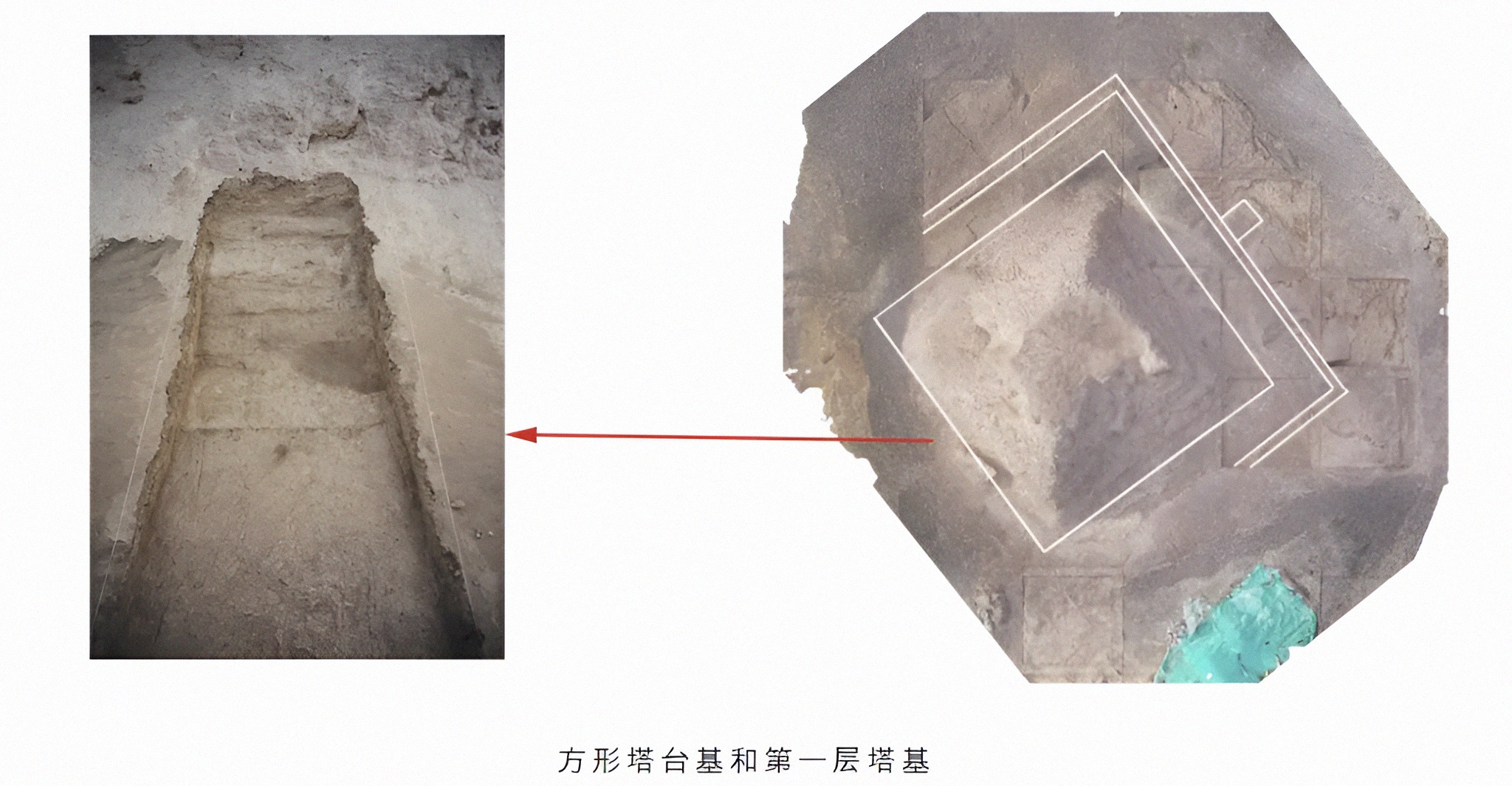 양좌两座 탑塔은 모두 토배土坯로 주변을 쌓은 거대 기대基台를 갖추니. 방형 대탑大塔의 기대基台 변은 길이 39.96m다.