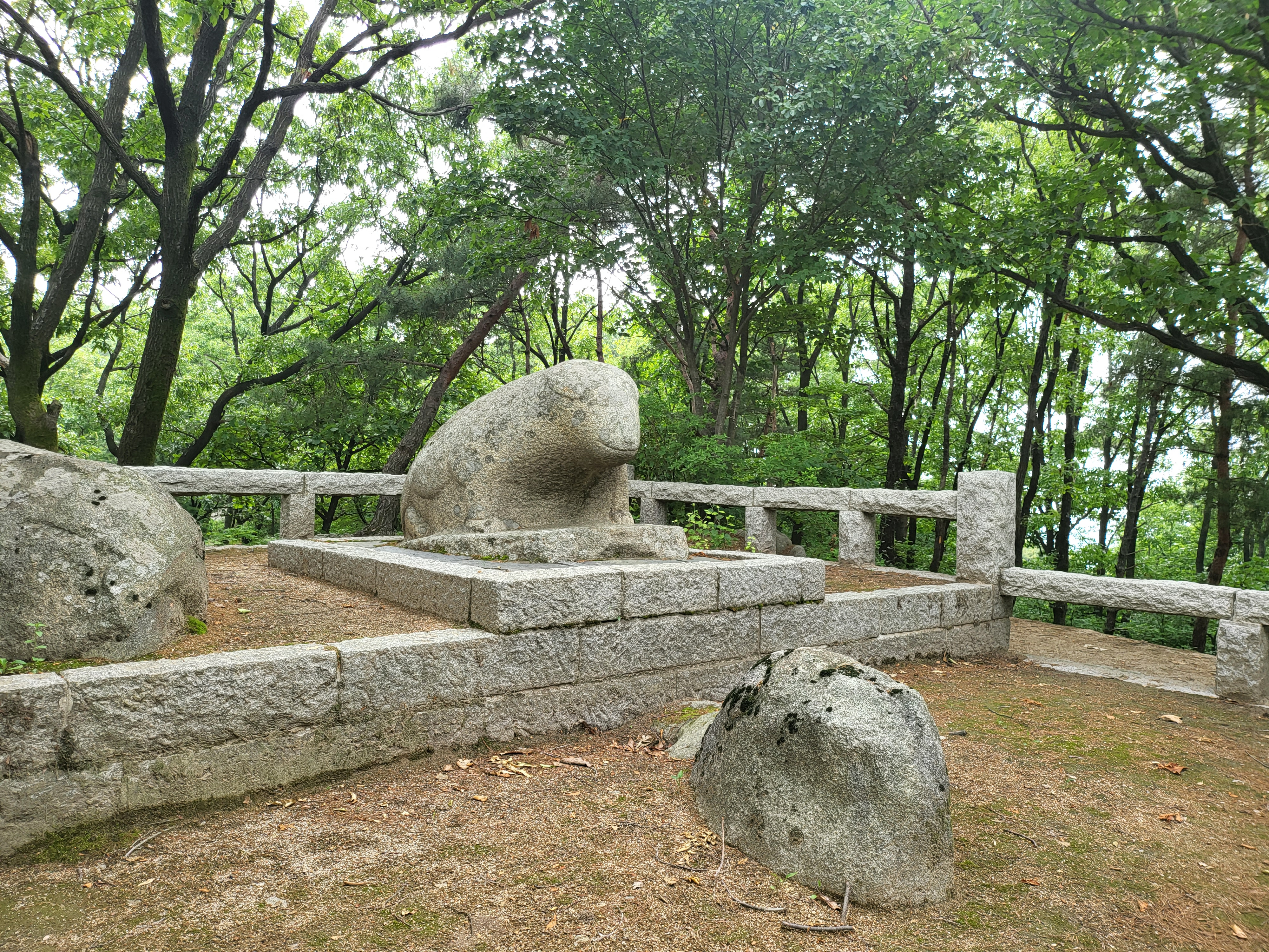 이 호암산성 내부 관악산을 바라보는 한 날망에 석구상石狗像이라 일컫는 석물이 하나가 실로 묘한데 그 정체는 오리무중이라 더구나 인근 한우물에서는 석구상이라 하는 글자 큼지막하게 박힌 돌덩이가 출현했으니 이 돌은 지금도 우물 한 쪽 벽에 쳐박힌 상태다.
