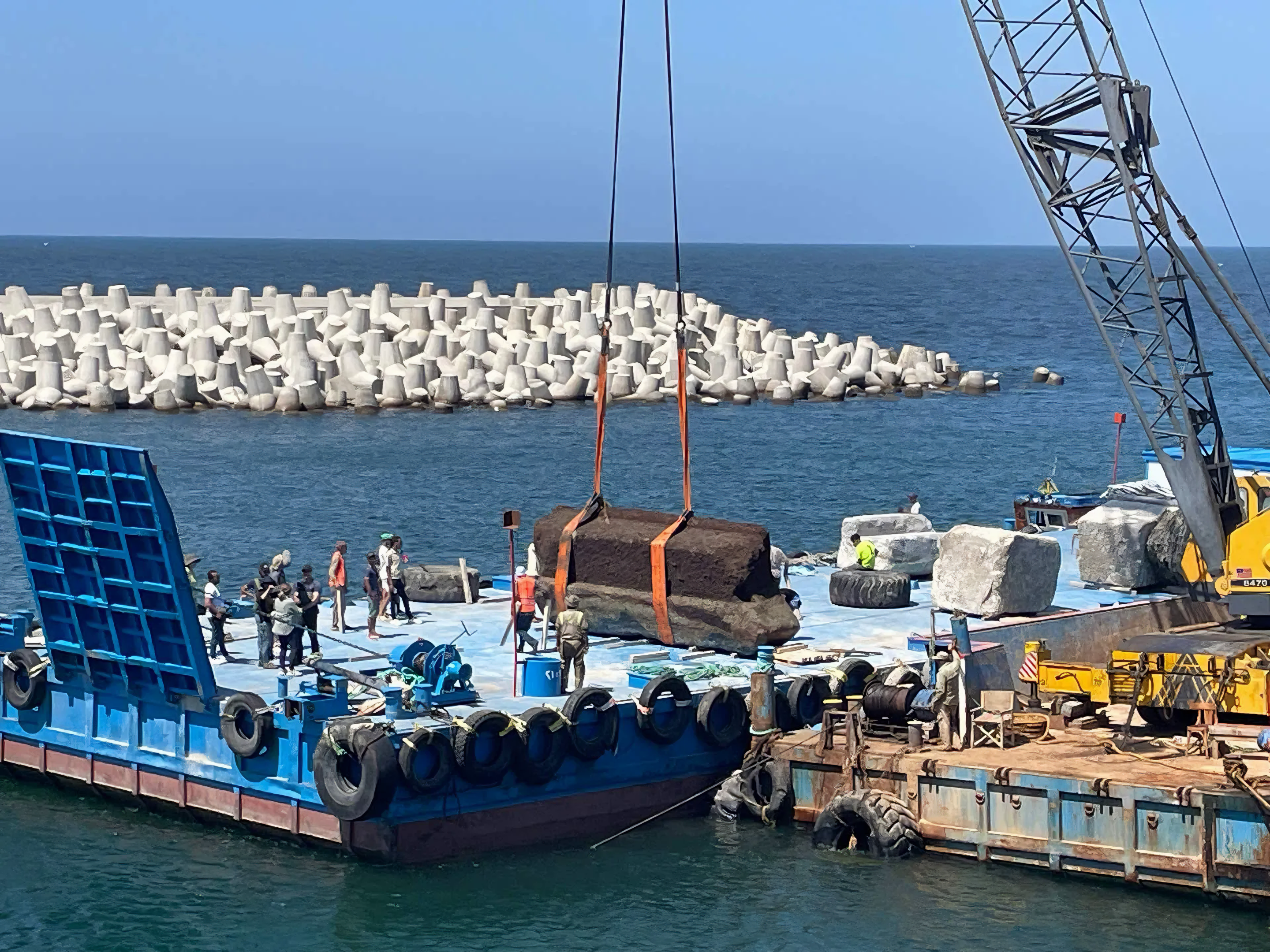 프랑스 팀, 해저 침몰 건축 부재들 인양 시작