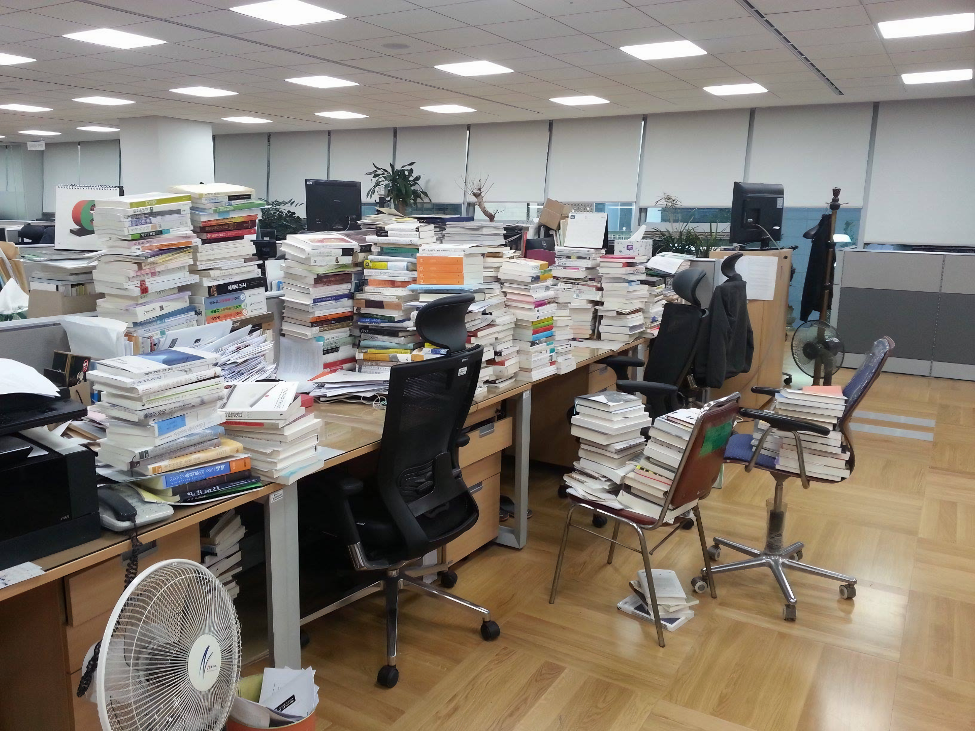 결국 선별을 할 수밖에 없으니, 이조차 쉽지 않아서 결국 저 꼴이 벌어져서 저렇게 책이 쌓이는 사태가 벌어지고 만다.