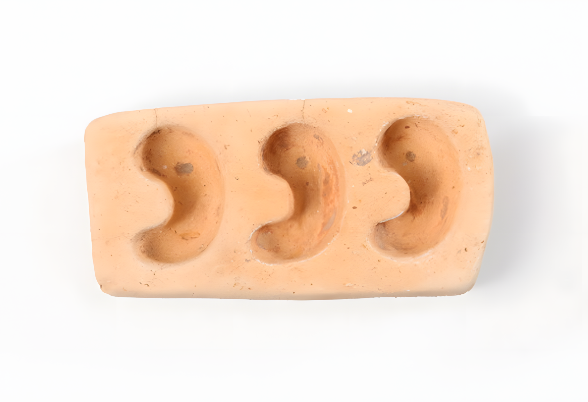 각설하고 저 분은 "유리옥 중에서도 곡옥을 만드는 데 사용했던 토제 거푸집"으로 길이 1.9㎝ 정도 "소형 곡옥 3개를 한 번에 만들 수 있게 각각의 틀을 나란히 배치해 납작한 사각형태로 만들었다."