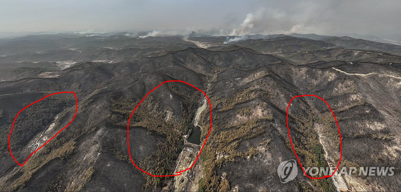 계곡이라는 계곡 산이라는 산은 다 탔다.
