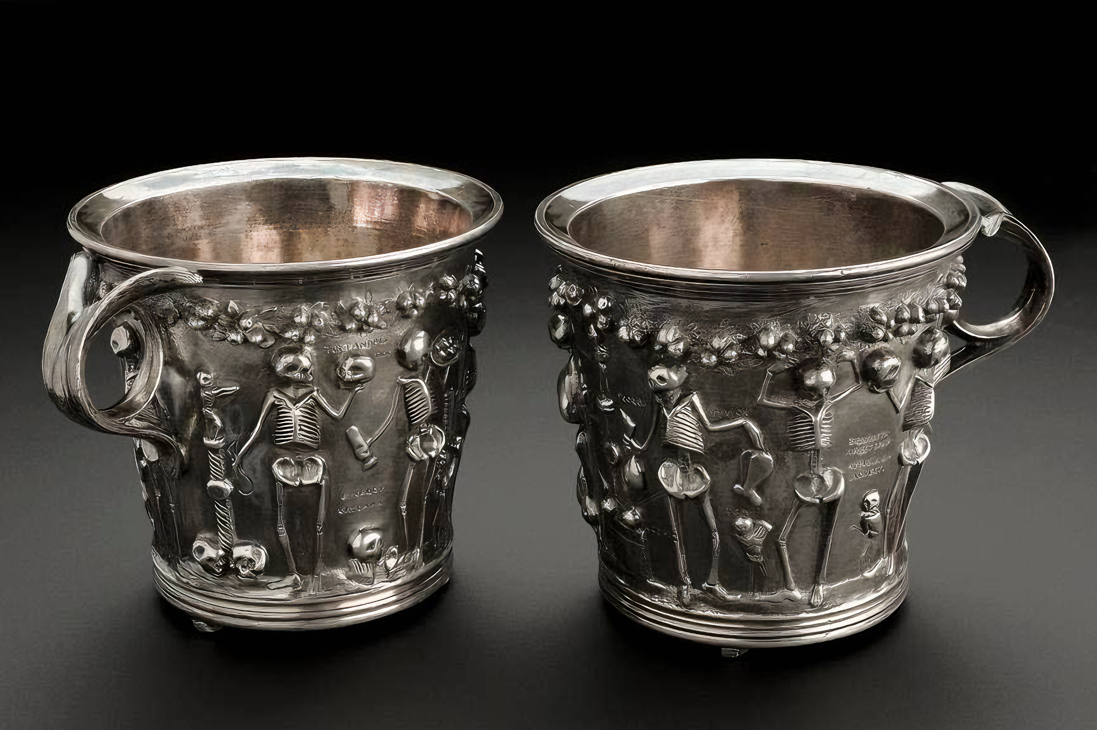 Two exquisite silver cups from the famous Boscoreale treasure, currently housed in the Louvre.