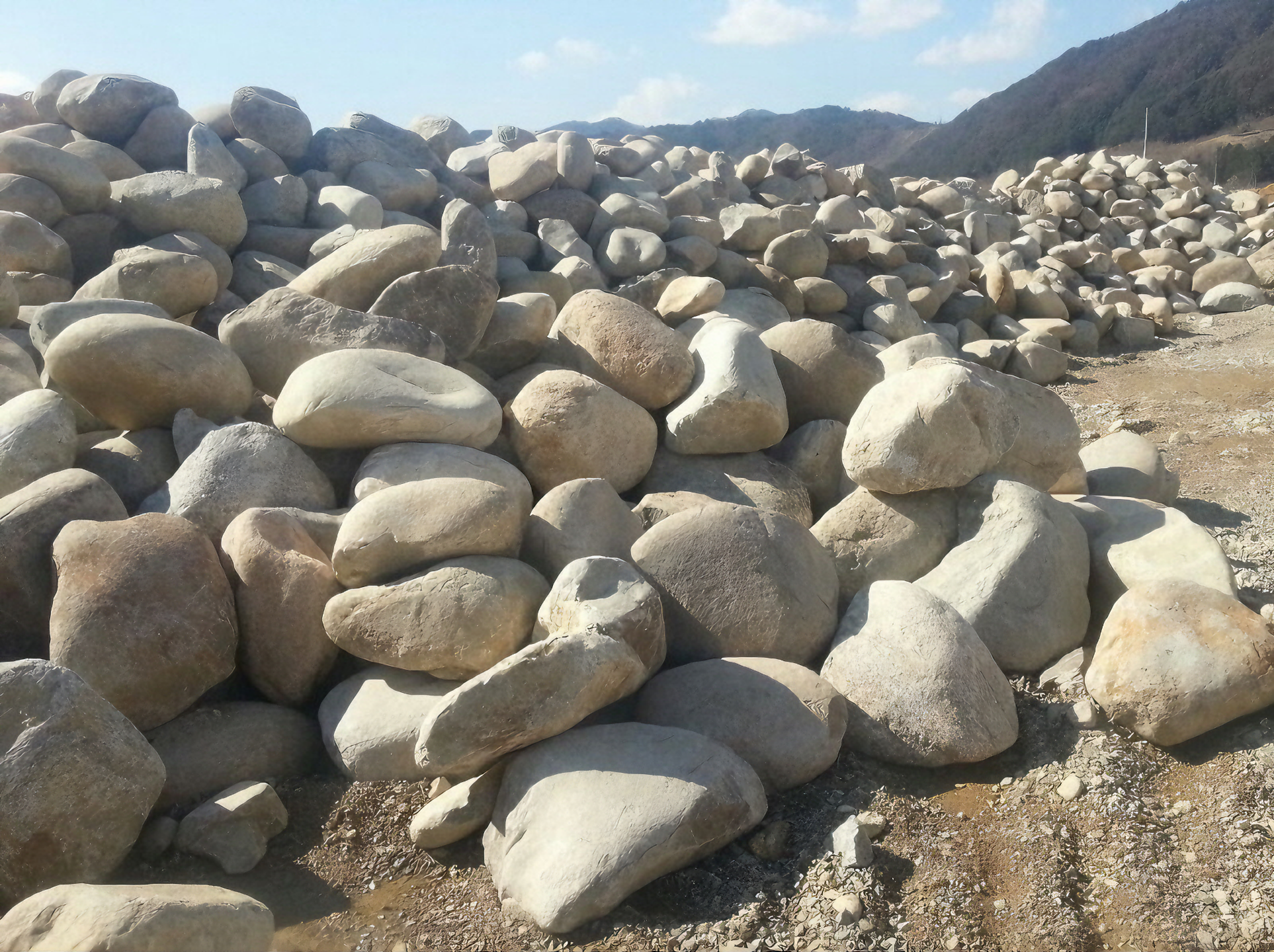 담 쌓는데 그래 가끔 다듬어 귀퉁이 쳐내기는 했지만 돌 갖다 그냥 쌓았다.