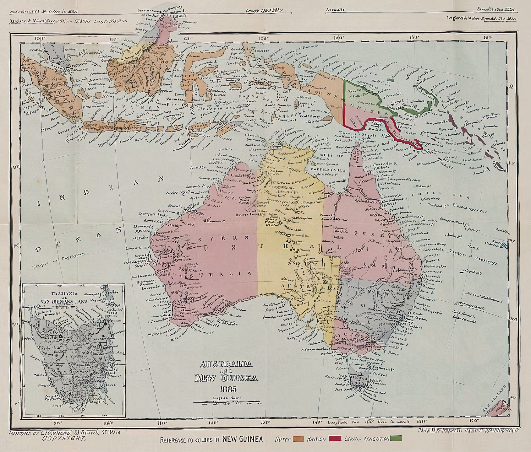 Papua or British New Guinea c.1887라 했으니 삼분된 직후 사정을 잘 보여준다 하겠다.