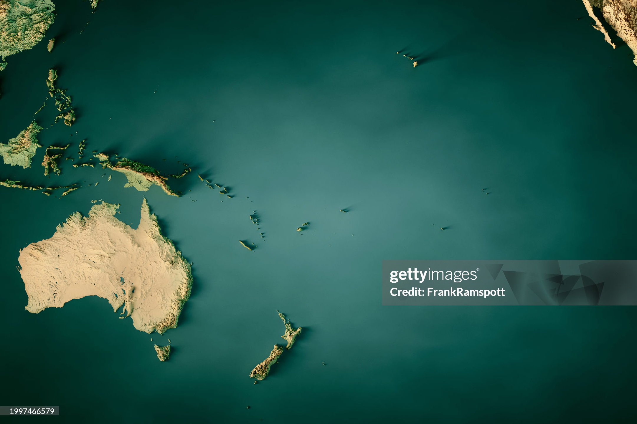 북쪽으로는 태평양, 동쪽으로는 비스마르크해Bismarck sea와 솔로몬해Solomon sea, 남쪽으로는 산호해Coral Sea와 토레스 해협Torres Strait, 남서쪽으로는 아라푸라해Arafura Sea와 접한다.