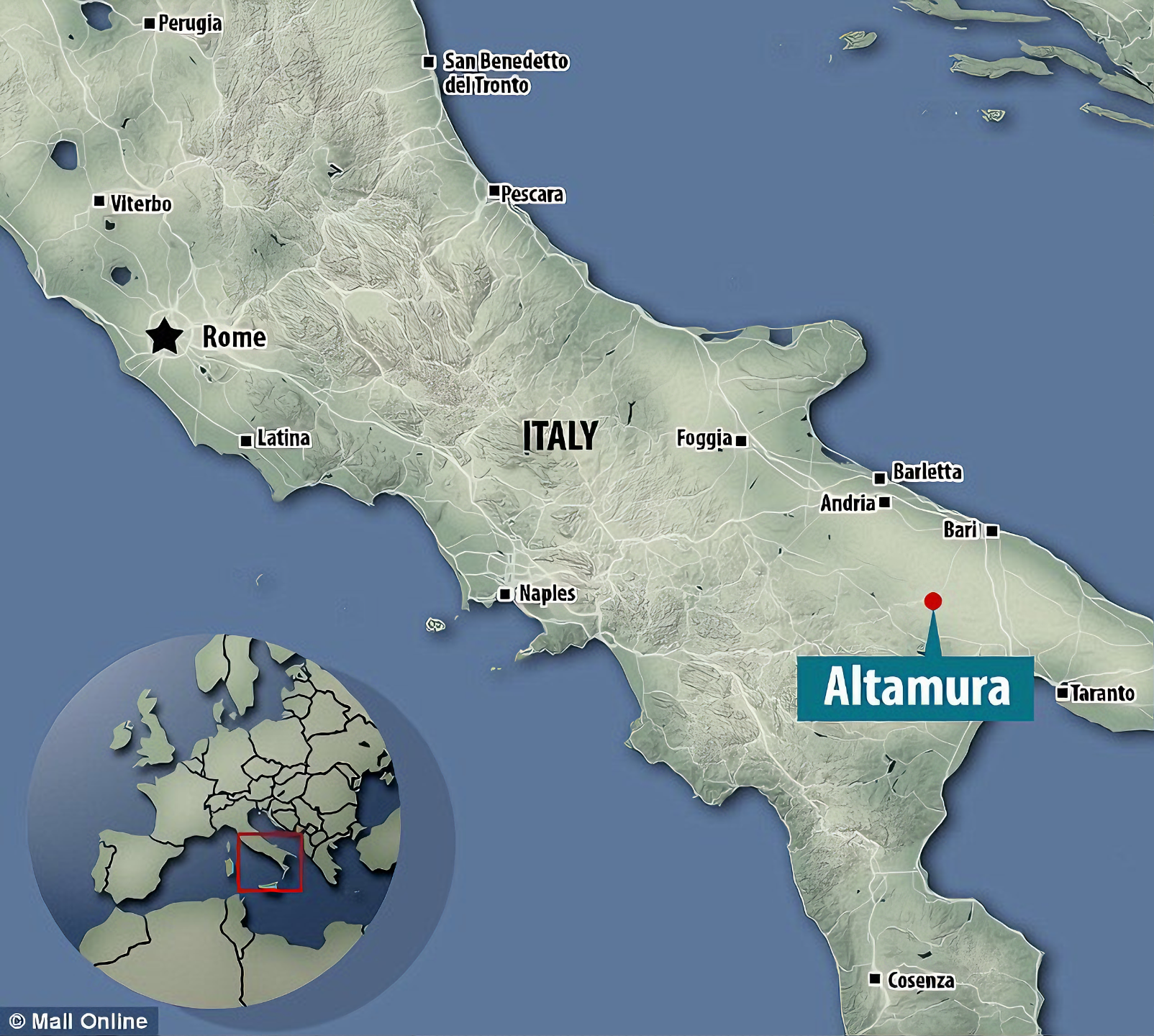 먼저 다루는 동굴 위치를 본다. https://en.wikipedia.org/wiki/Altamura_Man#/map/0 Altamura Man - WikipediaHominin fossil Altamura ManAltamura Man, surrounded by limestone depositsCommon nameAltamura ManSpeciesNeanderthalAgec. 157,500 years (aged