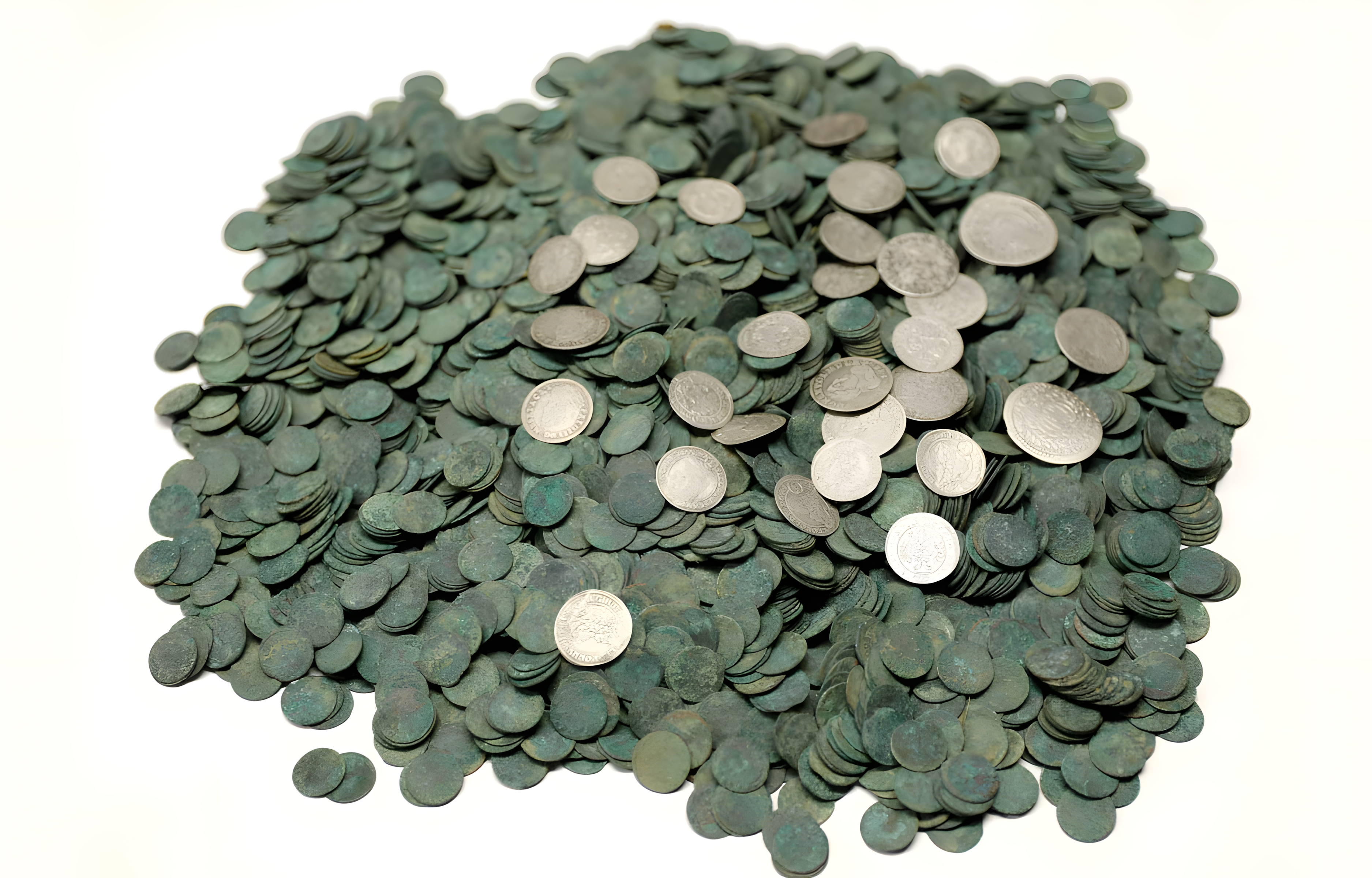 파네크 씨는 금속 탐지기의 강력한 신호를 조사하던 중 제비에르슈초프 인근 들판 지표면 바로 아래에서 여러 개 구리 동전을 발견했는데, 이는 수천 점에 달하는 훨씬 더 큰 동전 더미 일부임이 곧 밝혀졌다.