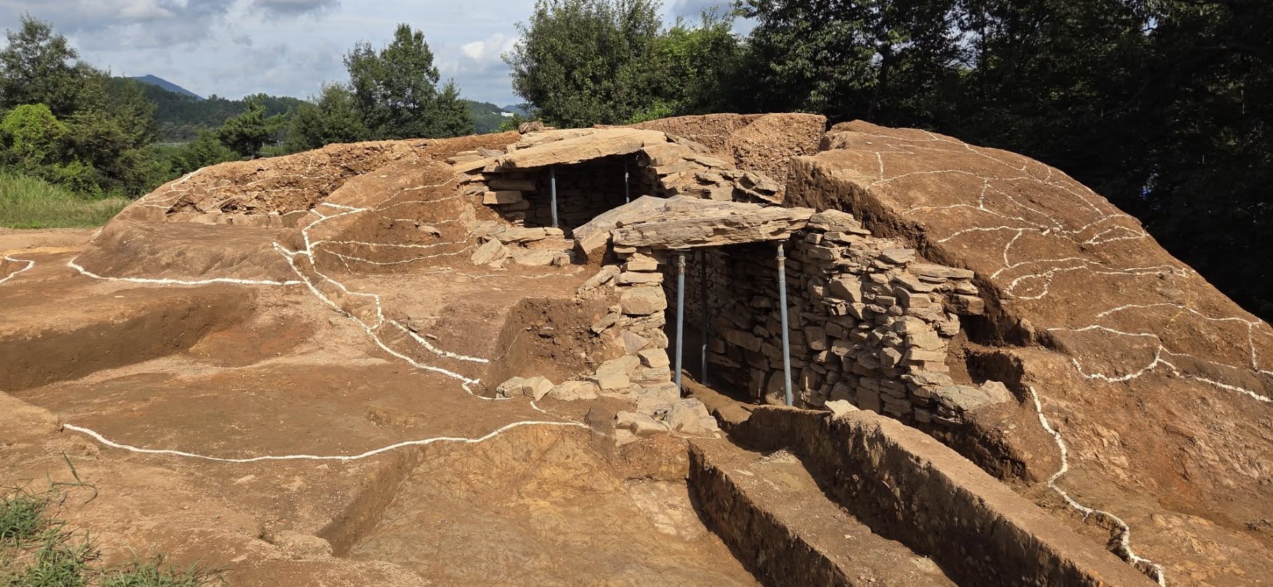 특히, 봉분의 축조 과정에서 토대土臺와 토제土堤*의 구조가 확인되어, 아라가야 고분군과 유사한 축조 기술을 공유했을 가능성이 제기되었다.
