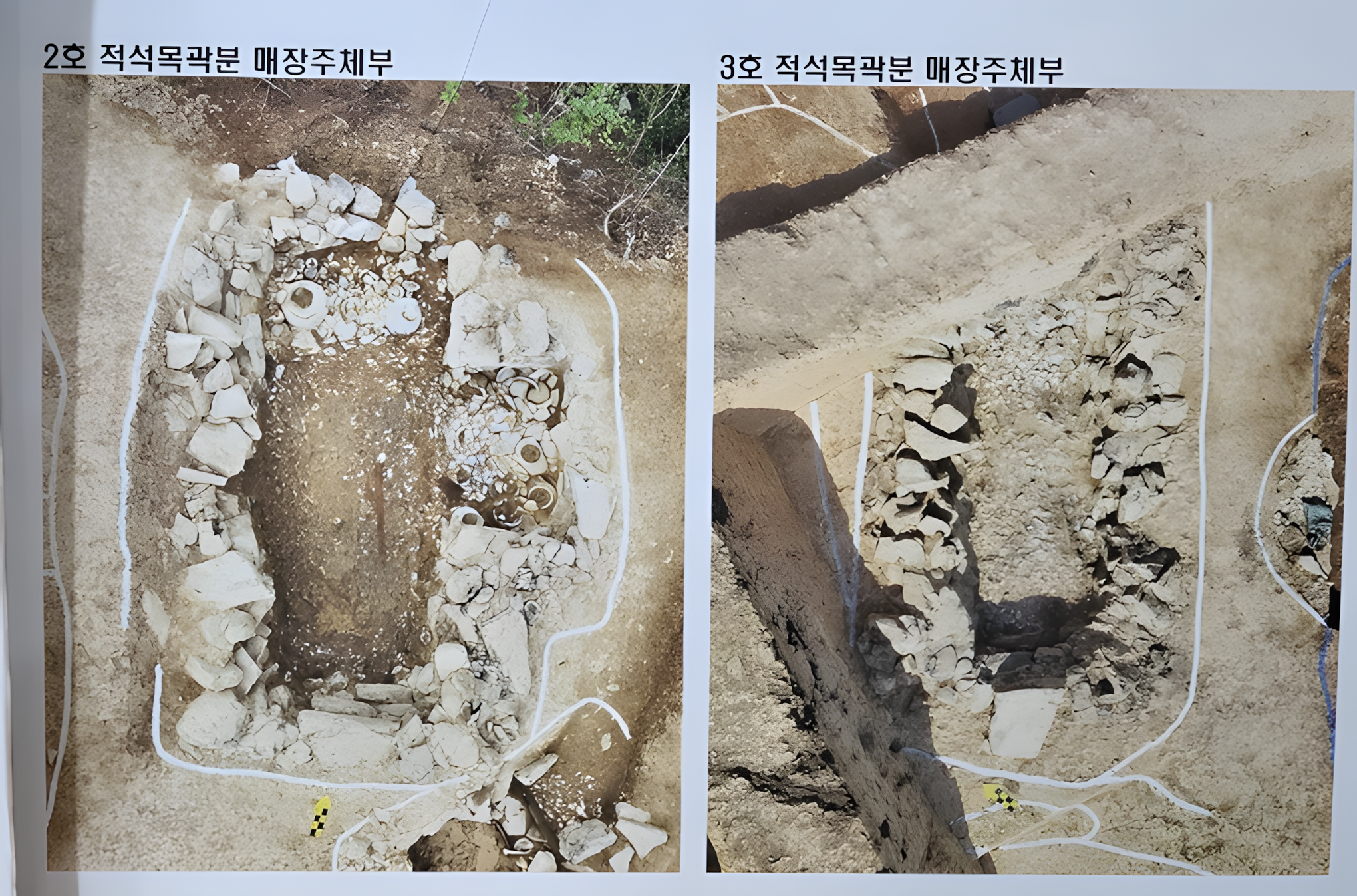 2호와 3호 돌무지덧널무덤은 1호 봉토에 덧대어 만들어졌는데 2호는 '凸'자, 3호는 장방형 형태다. 두 무덤에서도 다수의 철제 무기류와 토기류가 출토됐다...고 하거니와 배장묘인가 아닌가?
