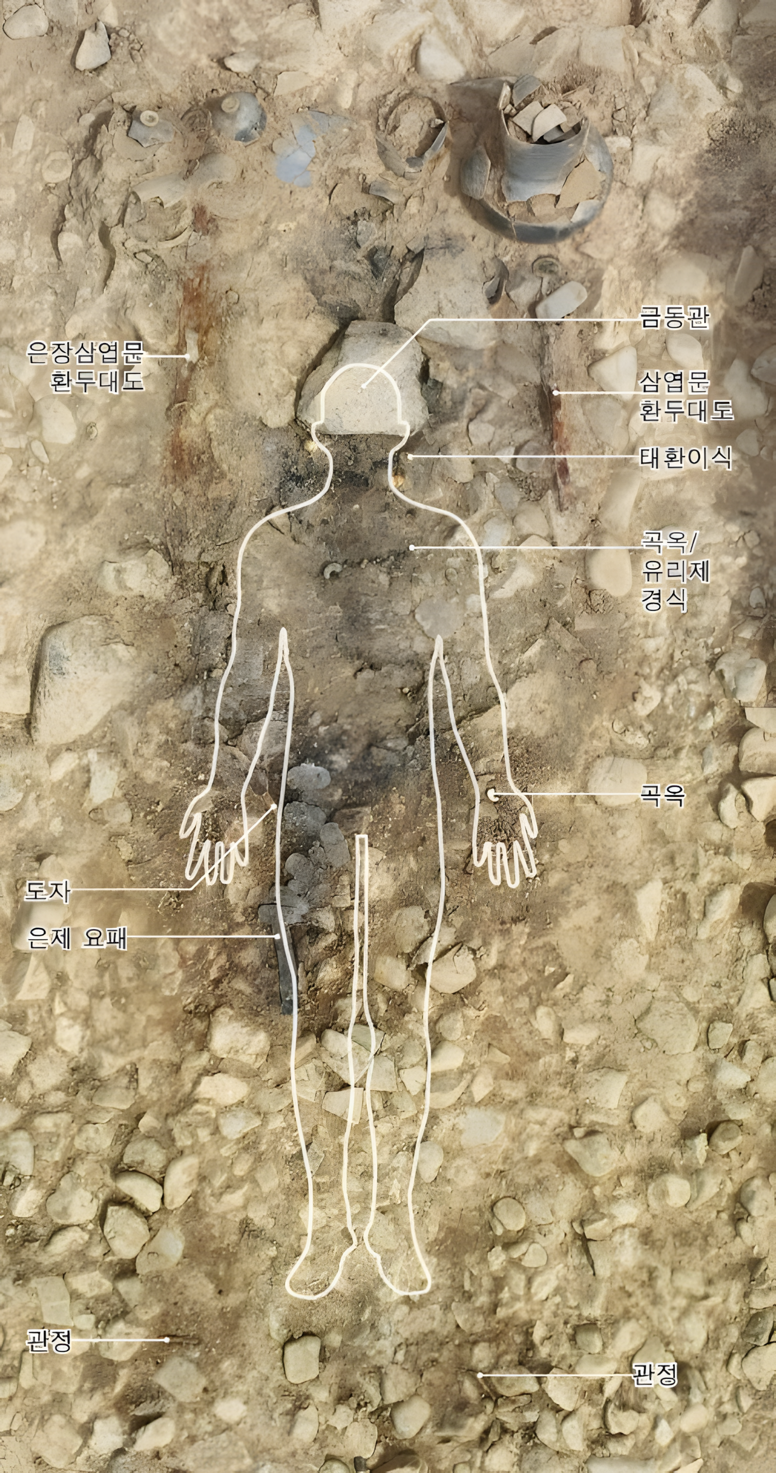 이 발굴이 조금 특이한 점은 환두대도 두 자루를 얼굴 양쪽으로 나란히 놓았다는 사실이며