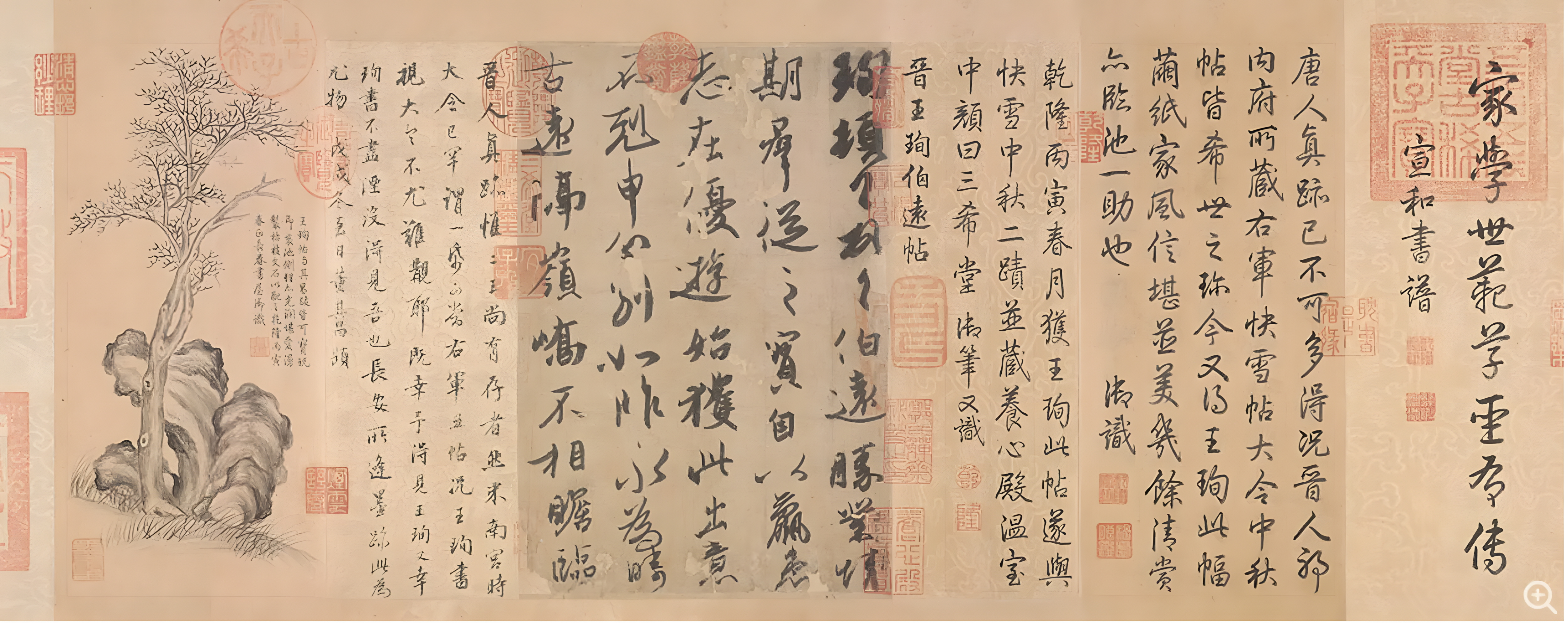 서예가 왕순王珣 작품인 백원첩伯远帖 또한 선보이니 위진 서예 작품의 '살아있는 화석'이라 할 만하다고 소개한다.
