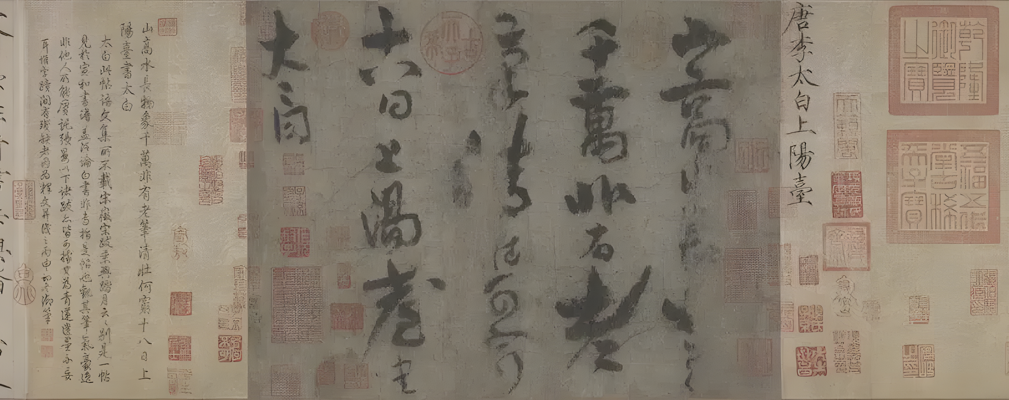 시선 이백, 곧 이태백 글씨는 어땠을까? 상양대첩上阳台帖은 그의 유일한 글씨 진적이라는데 25글자로 표일飘逸을 잘 드러낸다 하거니와 대체 글씨를 논할 때 항용 보이는 저 표일이란 괴물은 뭘까? 궁금한 사람은 자금성을 찾아보기 바란다.