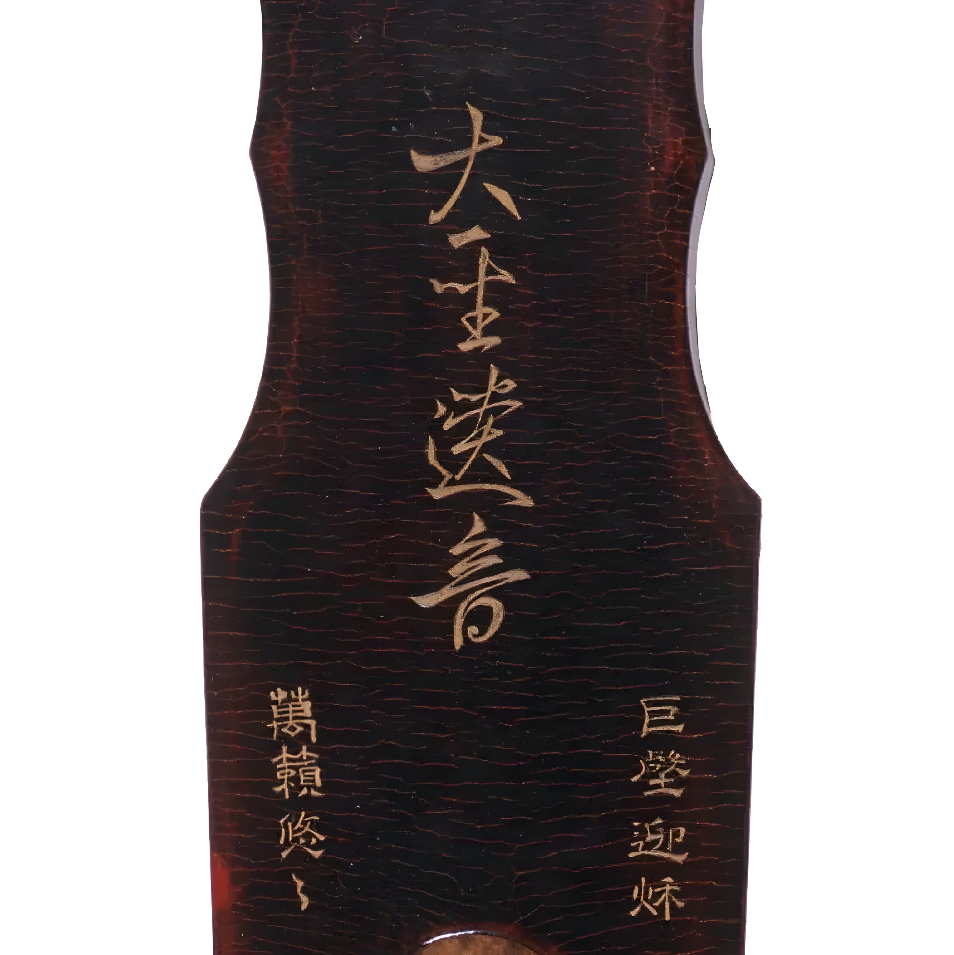 제작이 섬세하기 짝이 없는 이 거문고 몸통에는 초서체 '대성유음'이라는 글자를 새겼다.