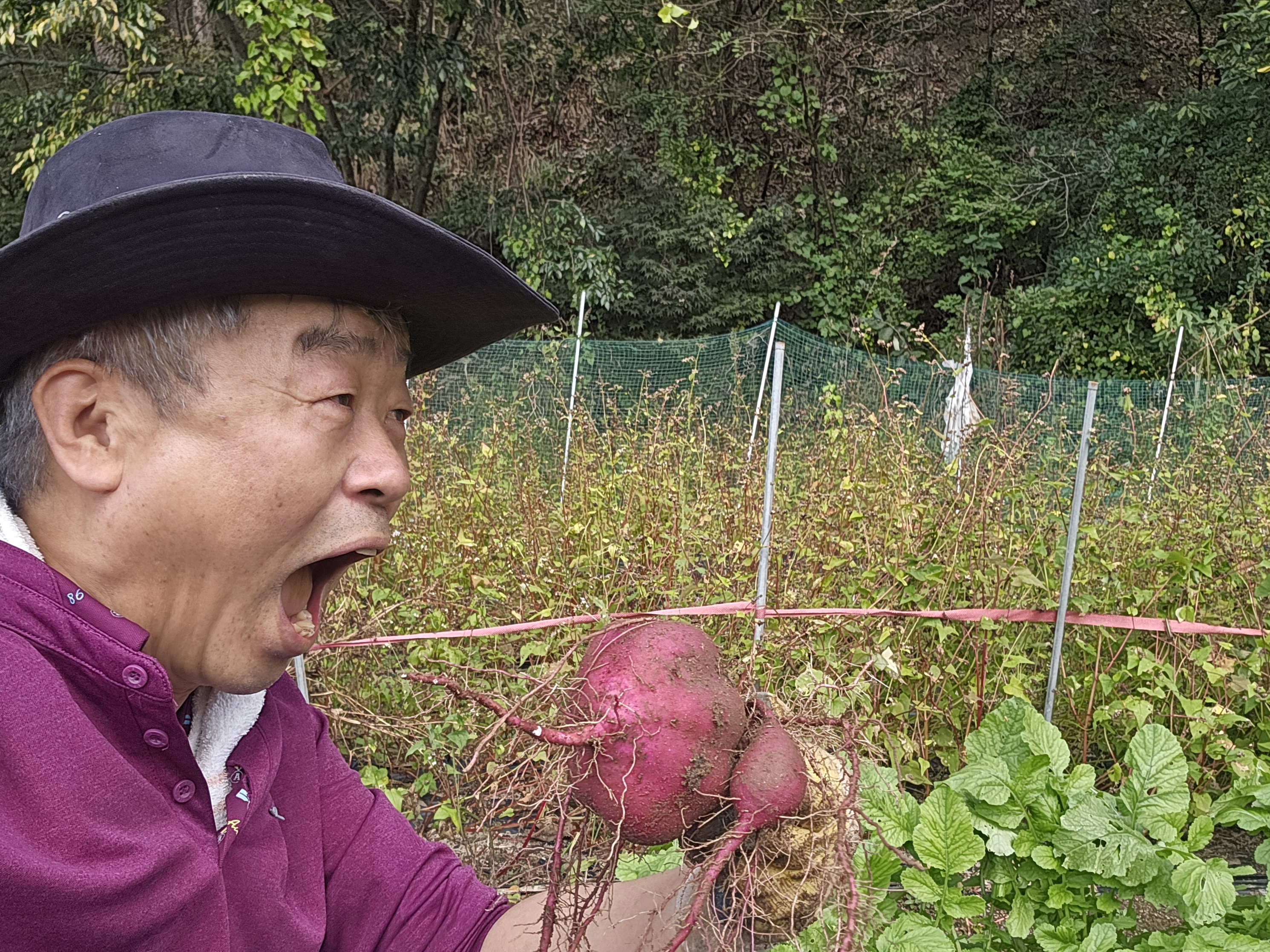 나머지 남은 고구마 순을 거두고, 내친 김에 오전에 조금 남은 두 골 고구마를 캤다.